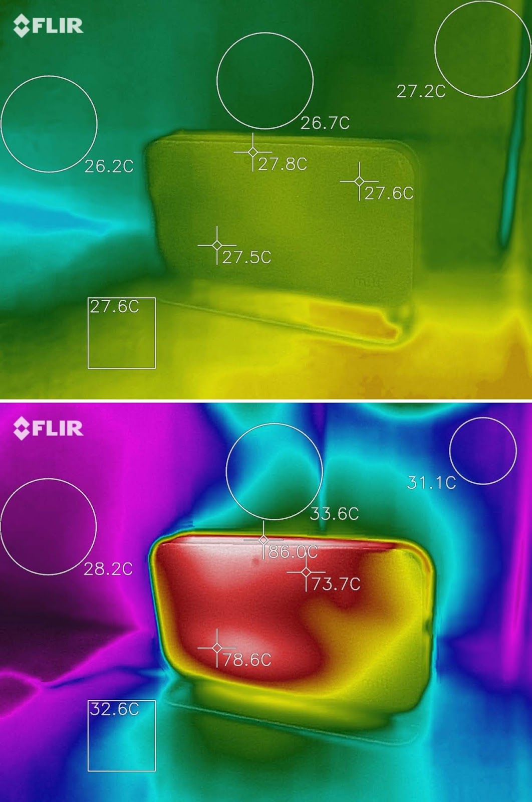 열화상 측정을 해본 결과 역시 대류 방식을 잘 활용하도록 설계되었다는 것을 알게 해줬는데요.