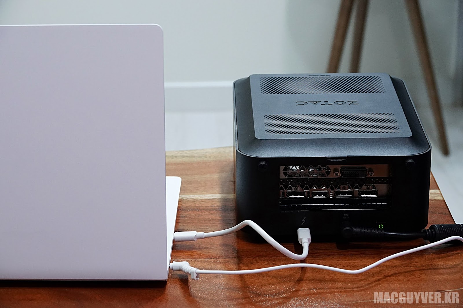 사용 방법은 간단합니다. 그저 썬더볼트 타입C 케이블을 LG 그램 15ZD980-BX70K와 eGPU에 연결하면 되기 때문이죠.