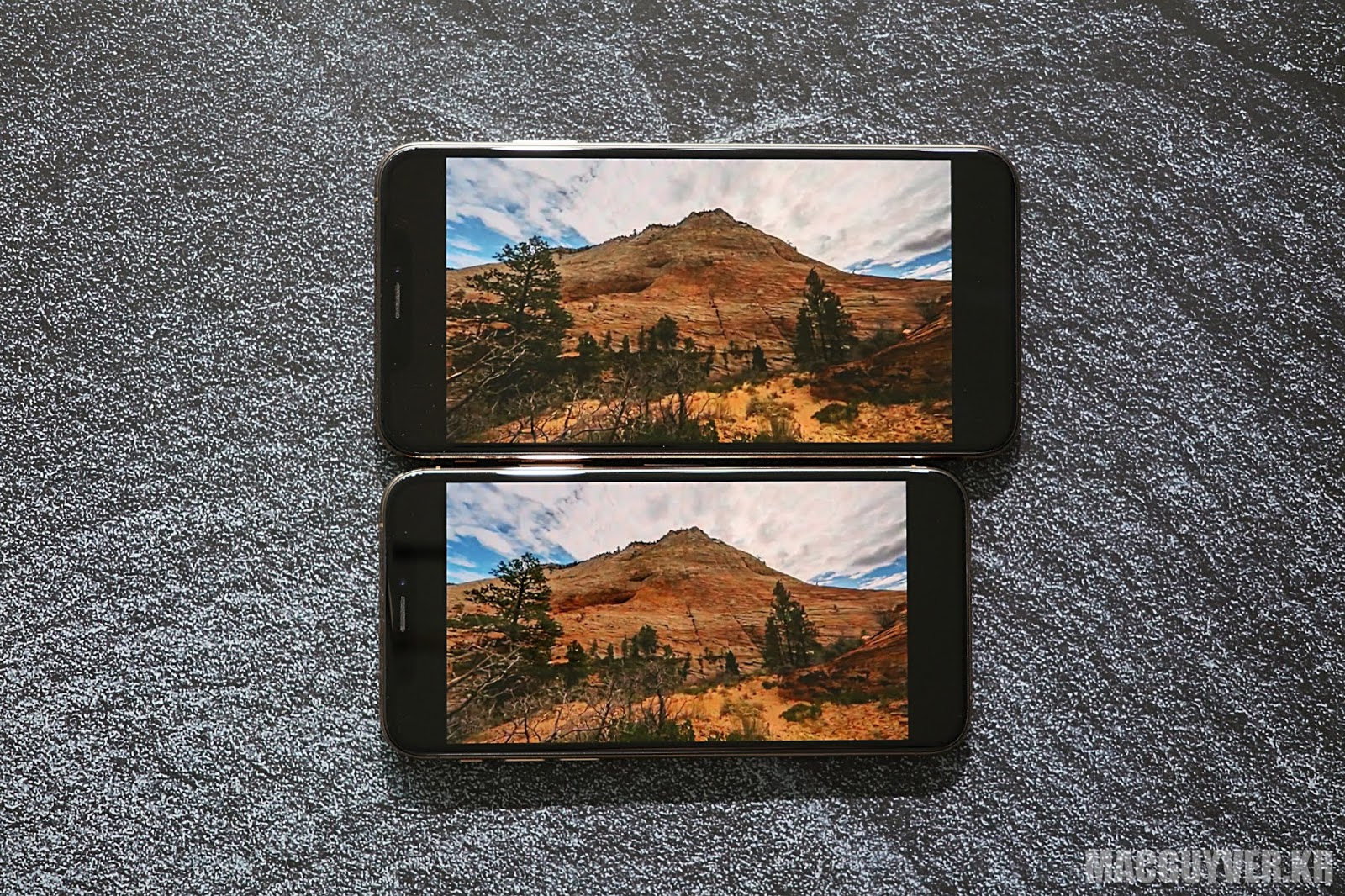 수치상으로 아이폰Xs와 아이폰Xr은 크게 차이가 없는 것 같지만, 실제 1:1로 놓고 보자면 차이가 컸는데요.