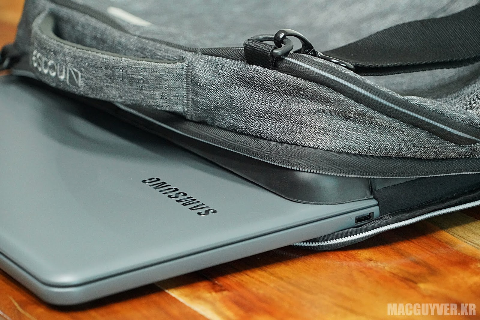 그리고 무게와 사이즈가 약간 차이가 납니다. 15인치와 14인치, 숫자로는 겨우 1만큼 차이나지만, 막상 가방에 넣을 땐 꽤 큰 차이가 느껴지곤 하죠.