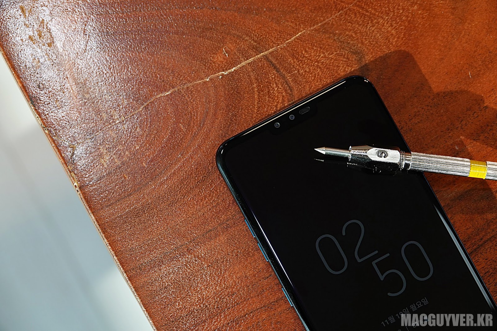 LG V40 씽큐의 내구성이 좋기는 하지만, 여전히 보호필름이나 강화유리가 필요한 이유를 알 수 있을 것 같습니다. - MACGUYVER.