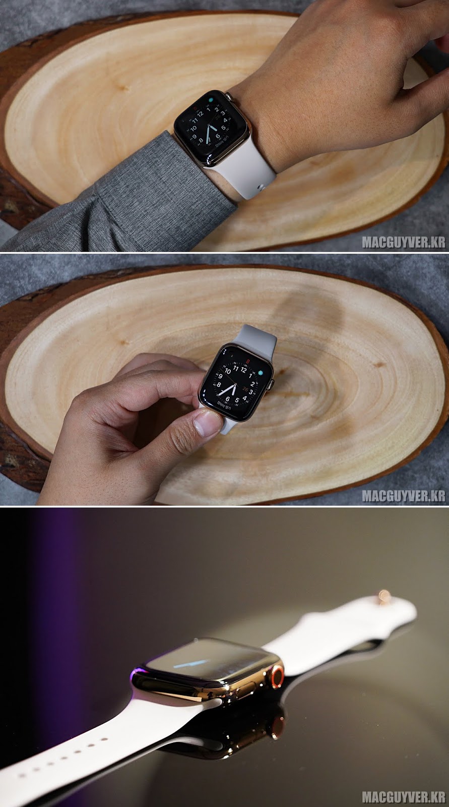 ✎ 영롱한 빛을 품은 애플워치4 골드 ST 40mm와 애플워치4 골드 ST 44mm는 세련되면서도 고급스러웠는데요. 밴드 선택지가 거의 없다는 점이 아쉬웠습니다.