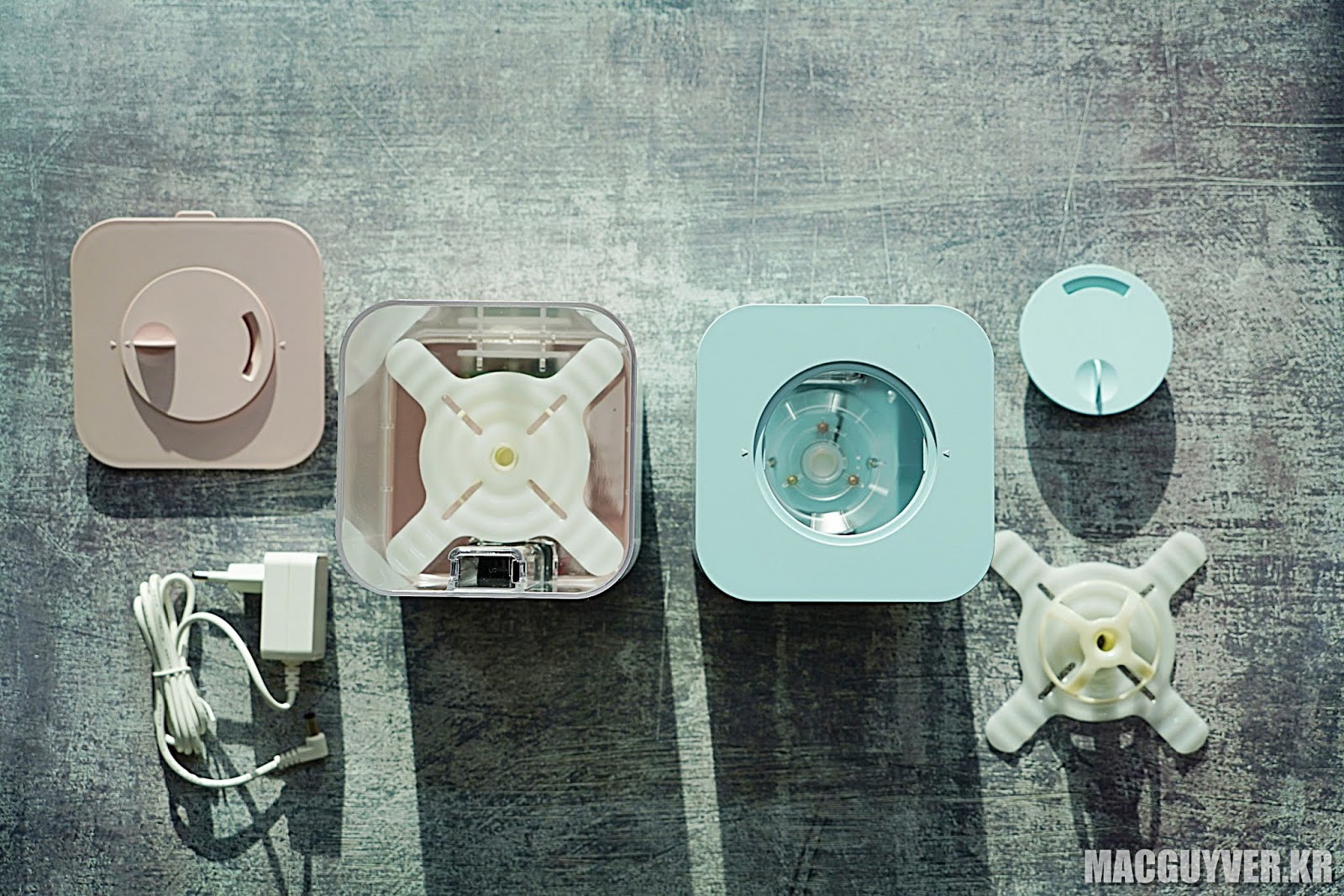 또 물튀김을 방지해주는 필터는 분리가 됩니다. 처음에 실수로 분리한 채 가습기를 틀었는데, 책상이 땀 흘리는 줄 알았습니다. 세척한 다음에 다시 연결하는 걸 잊지 말아야겠죠.