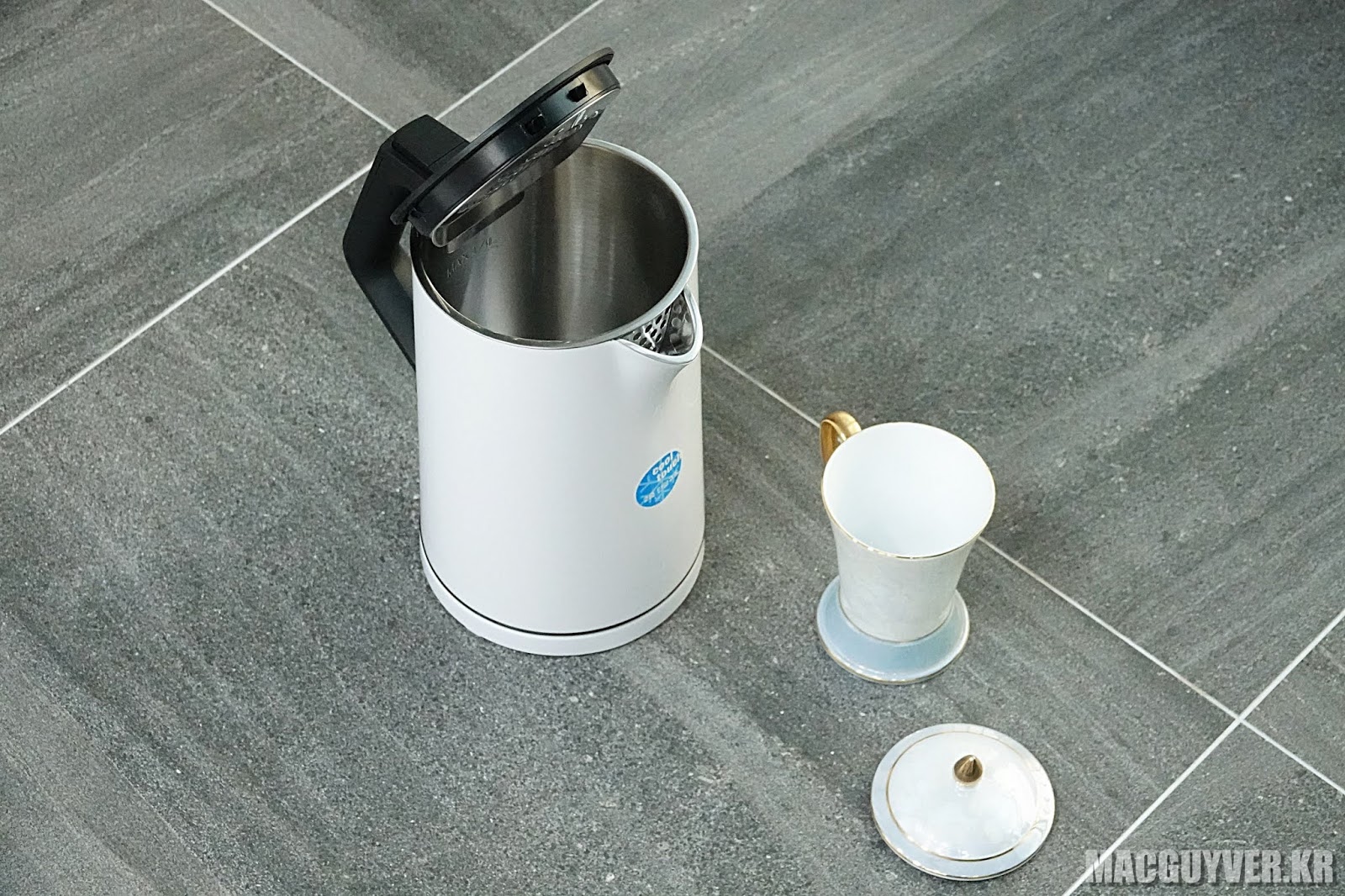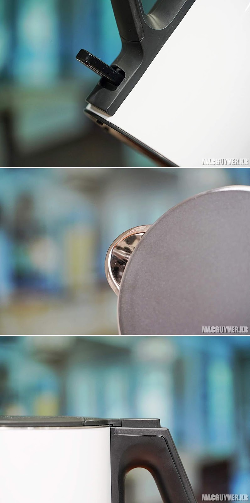 그래서 물이 다 끓고 난 뒤 뚜껑을 열었을 때 전기포트 밖으로 뜨거운 물이 흐르는 것을 방지해 더욱 안전한 사용이 가능하죠.