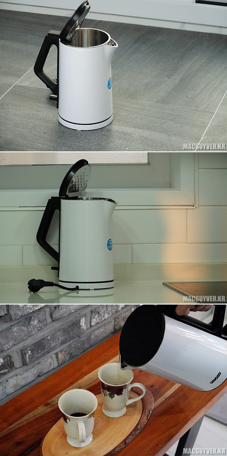 사용하기 편하고, 예쁜 디자인의 전기포트를 찾으셨다면 우놀드 1.4L 무선 2중단열 전기포트 NUK18520을 추천드립니다. - MACGUYVER.