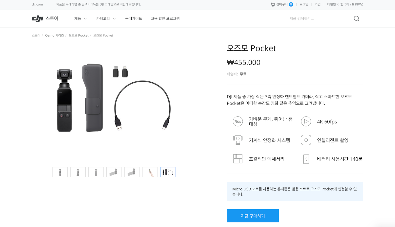 어쩌면 DJI 오즈모 포켓은 실험적인 제품이면서 앞으로가 더욱 기대되는 새로운 카테고리의 카메라가 아닐까 싶은데요.