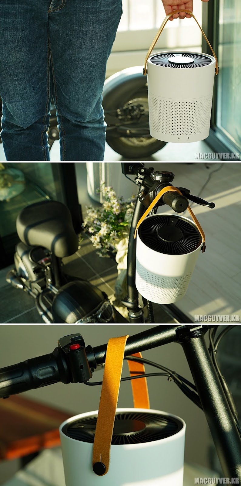✎ 휴대성이 높아 걸어두거나 여기저기 들고 이동하기도 편했던 미니 공기청정기였습니다.