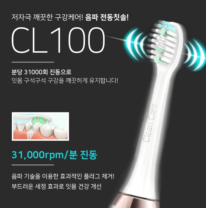 #2. 진동모드 : 단미 CL100 클린케어 휴대용 충전식 음파전동칫솔은 분당 31,000회 음파진동으로 효과적인 플라그 제거와 동시에 잇몸 구석구석 깨끗한 구강 관리가 가능합니다.