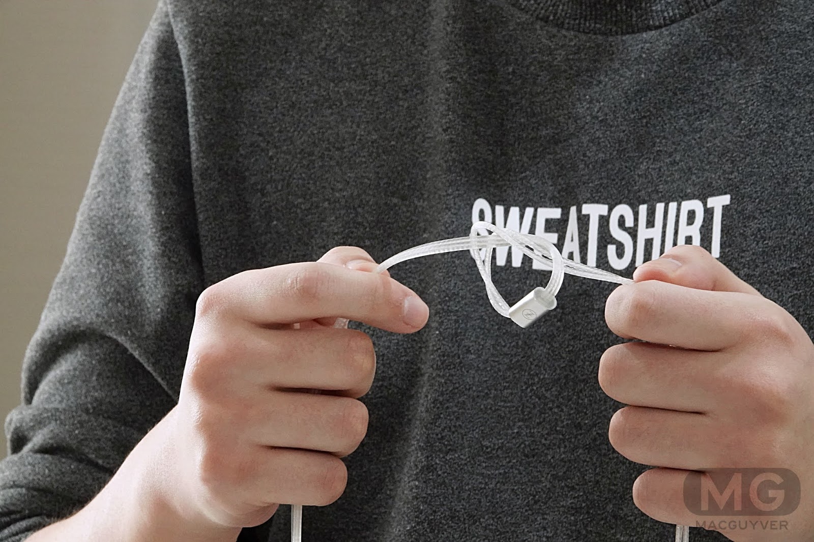 이어폰 줄은 두 개의 라인이 끝까지 이어졌고, 재질감이 독특하고 엉킴이 적어서 편리하게 사용하는 것이 가능했습니다.