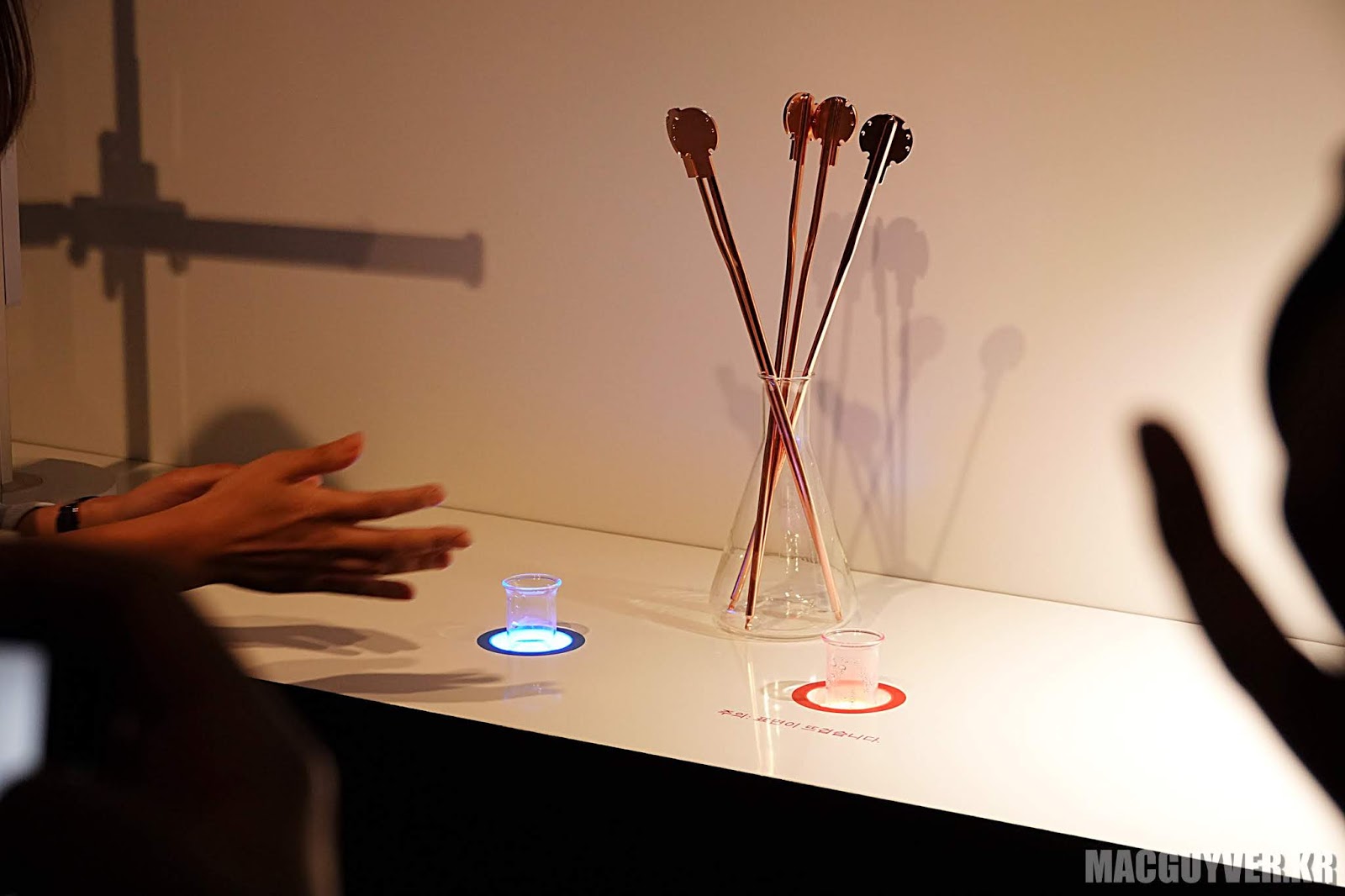 옆 공간에 마련된 시연회장에서는 다이슨 라이트사이클™ 테스크 조명의 핵심 기술들을 직접 체험해볼 수 있게 구성되어 있었습니다.