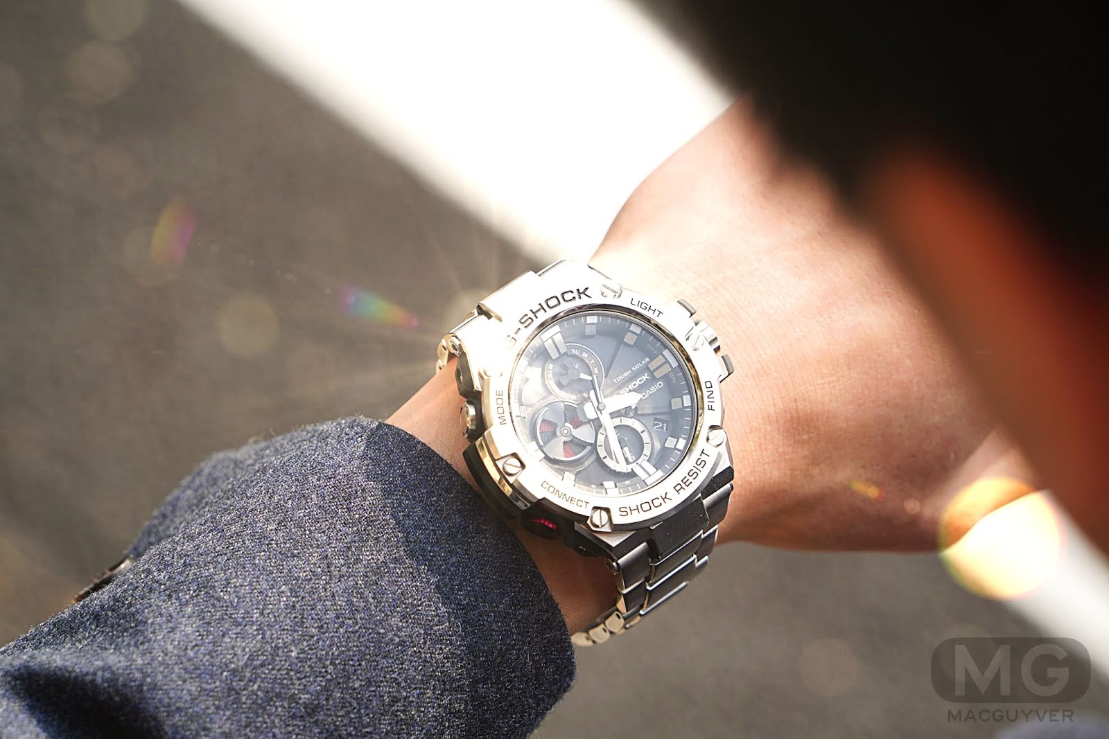 ✎ 스마트폰과 연동이 가능하며, 모든 다이얼이 아날로그라는 장점을 품은 G-STEEL CHRONO SOLAR