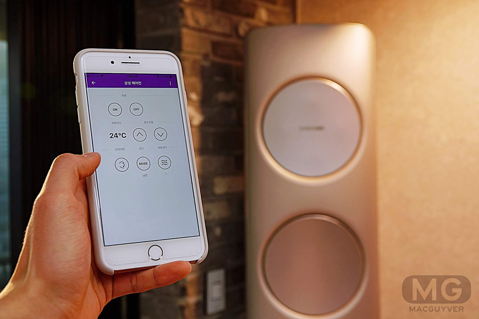 삼성 에어컨과 연결해서 일단 사용해봤는데, 전원 On/Off 외에도 여러 기능들을 켜고 끌 수 있더라고요.