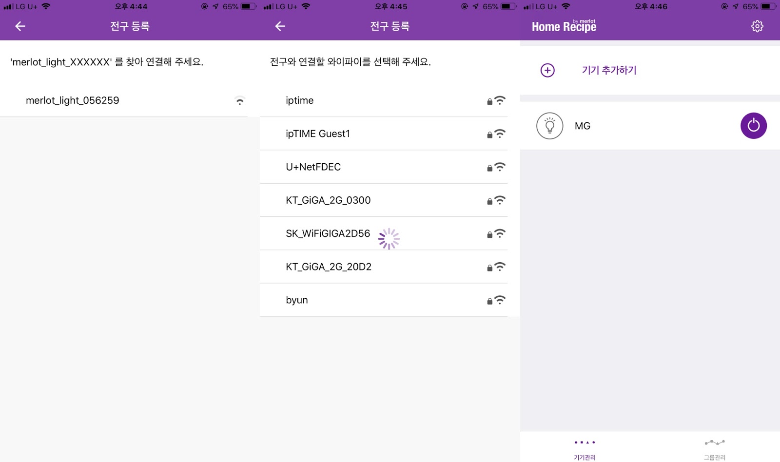 소요리 IoT 허브 벌브를 스마트폰 앱에 등록하는 방법은 아래의 스크린샷을 참고하시기 바랍니다.