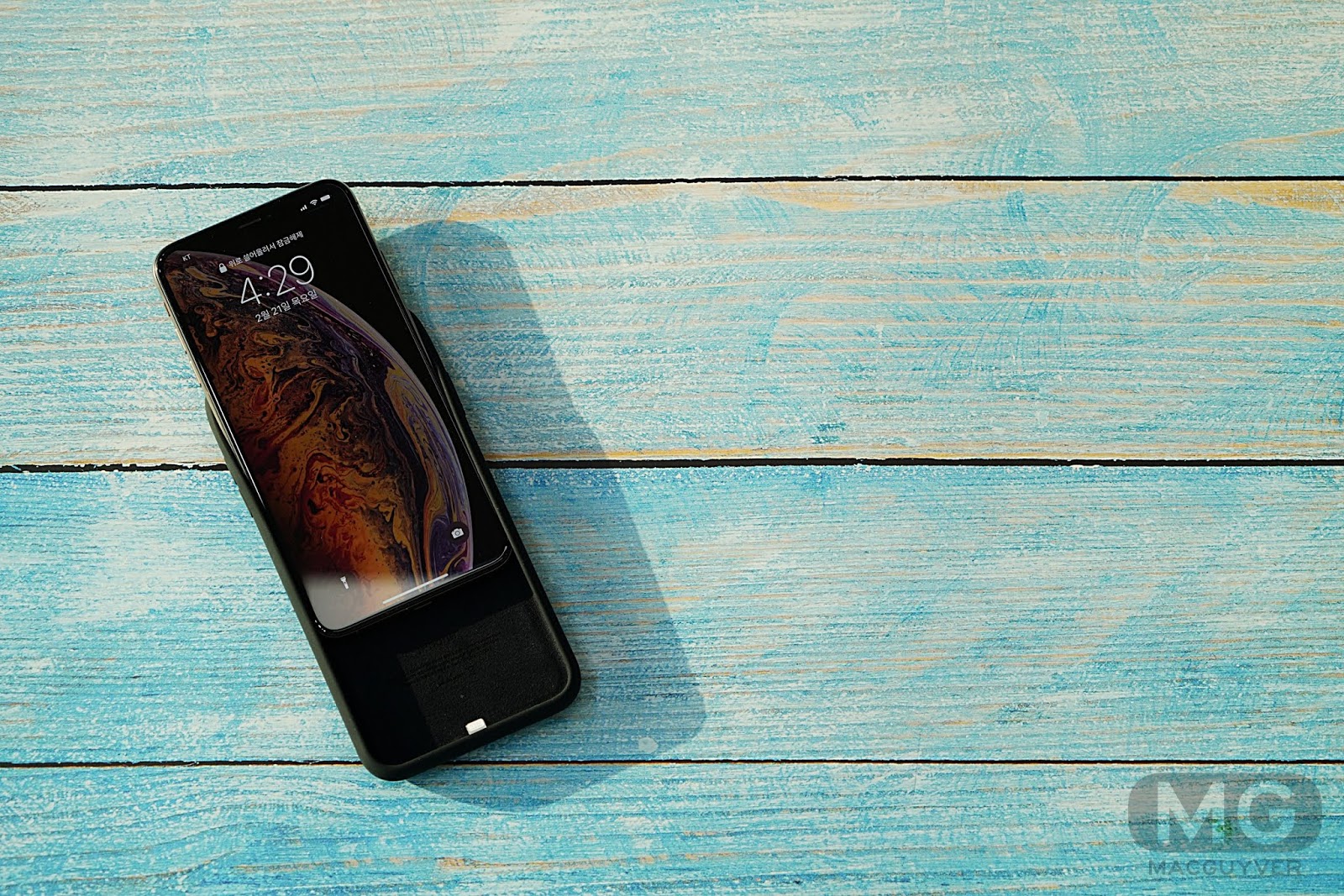 첫 번째 팩트는 무게입니다. 아이폰Xs 맥스용 스마트 배터리 케이스를 기준으로, 109g에 달하기 때문에 아이폰Xs 맥스에 씌우면 총 무게는 무려 317g이 됩니다.