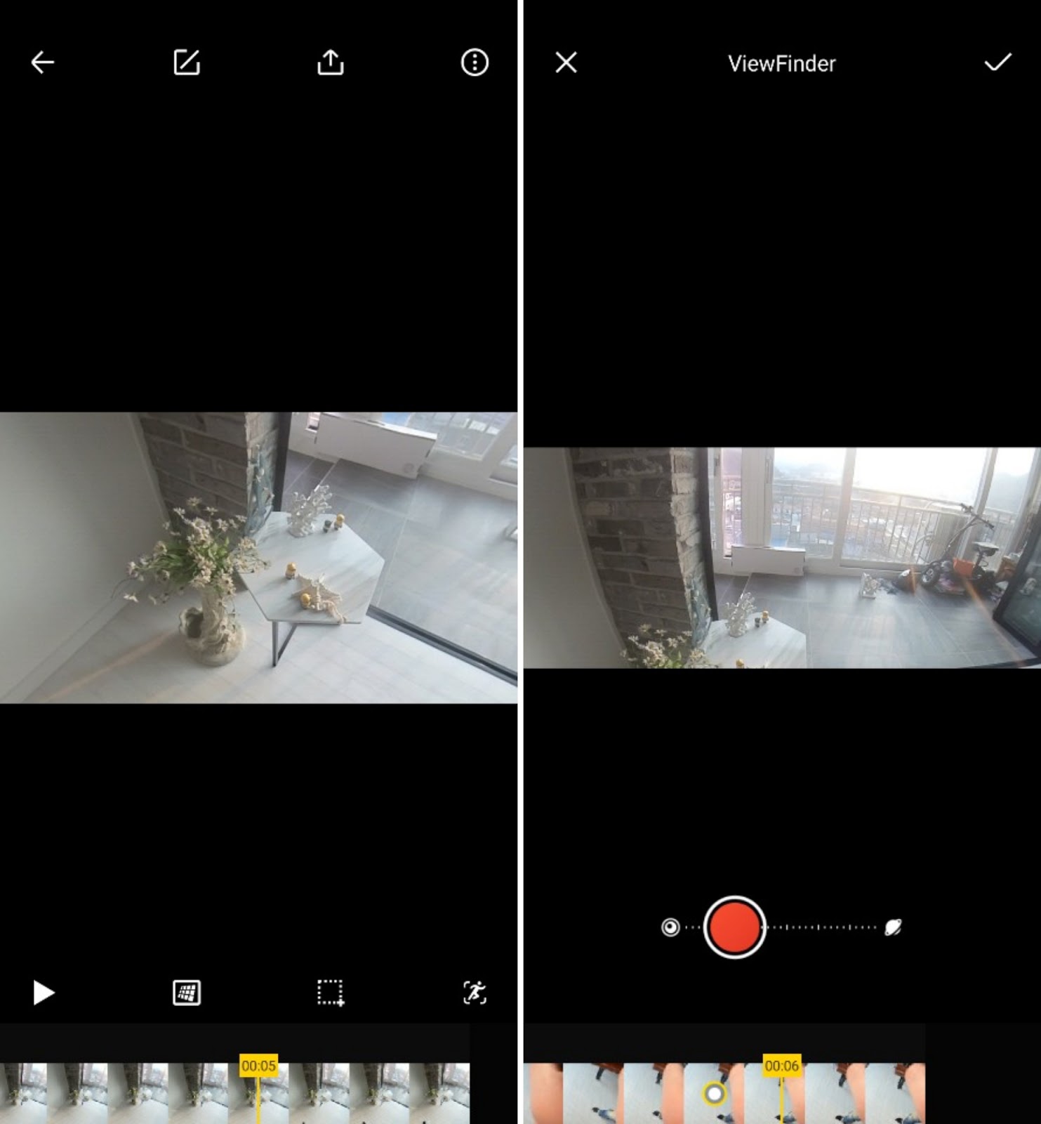 앞서 말했듯 인스타360 One X 360도 액션캠을 사용해 전체 화면을 담은 다음 원하는 화각만 잘라서 영상을 만들 수 있는데요. 그 기능을 스마트폰 앱으로 사용해볼 수 있었습니다.