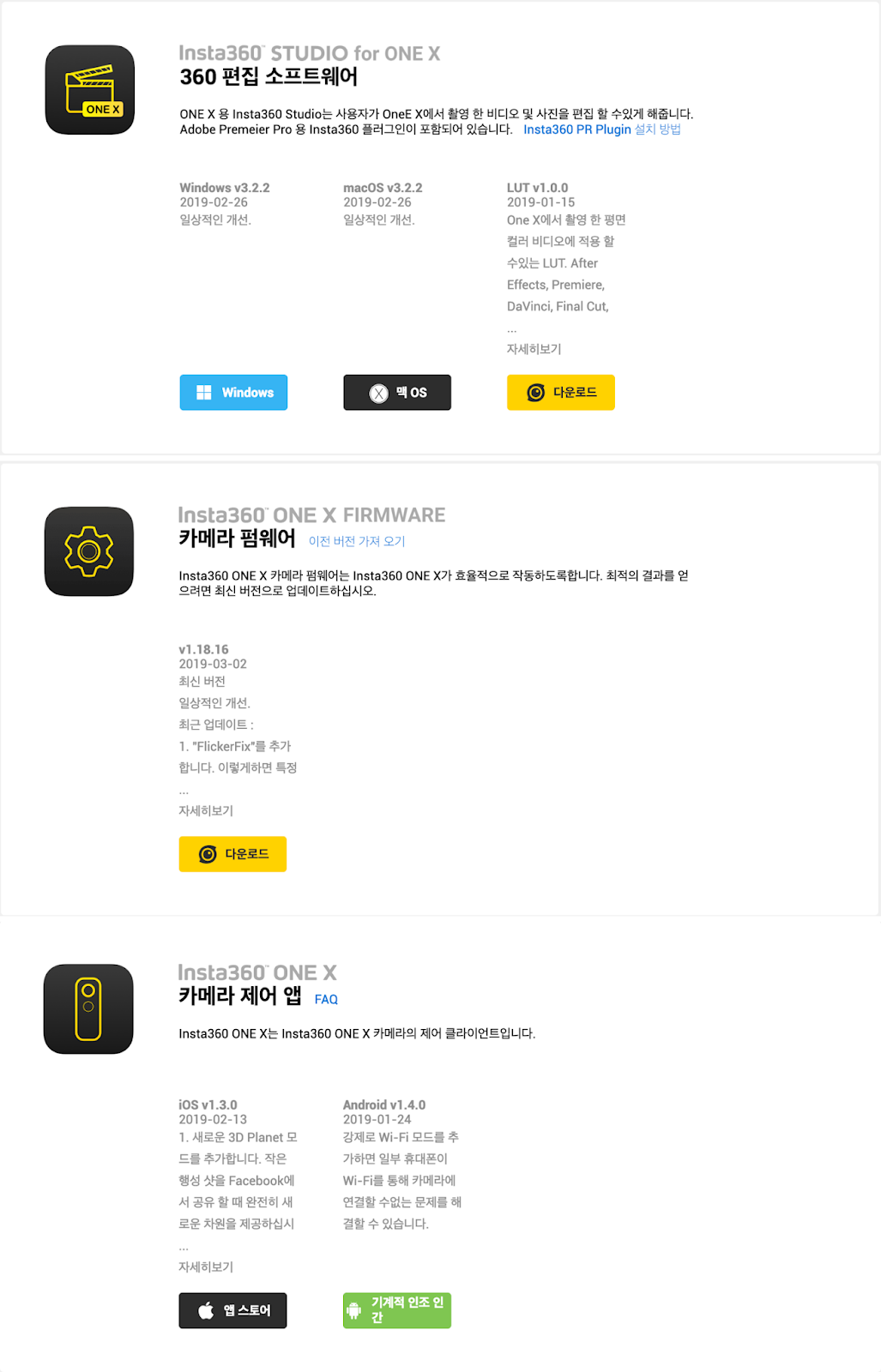 ✎ 인스타360 One X 360도 액션캠 소프트웨어 다운로드 앱입니다.