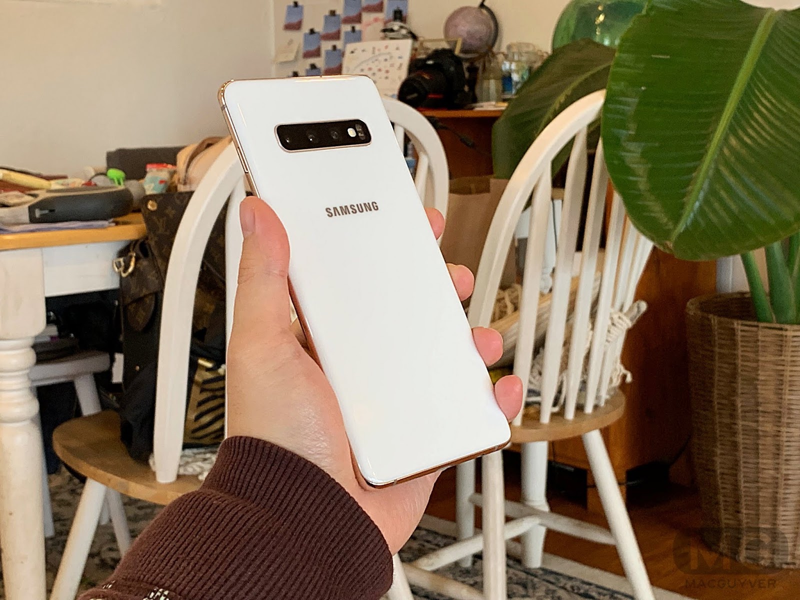 두 번째 포인트는 세라믹입니다. 20g 이상 더 무겁고 묵직한 느낌이 드는 갤럭시S10 플러스 세라믹 화이트 모델은 매우매우 고급스럽습니다.