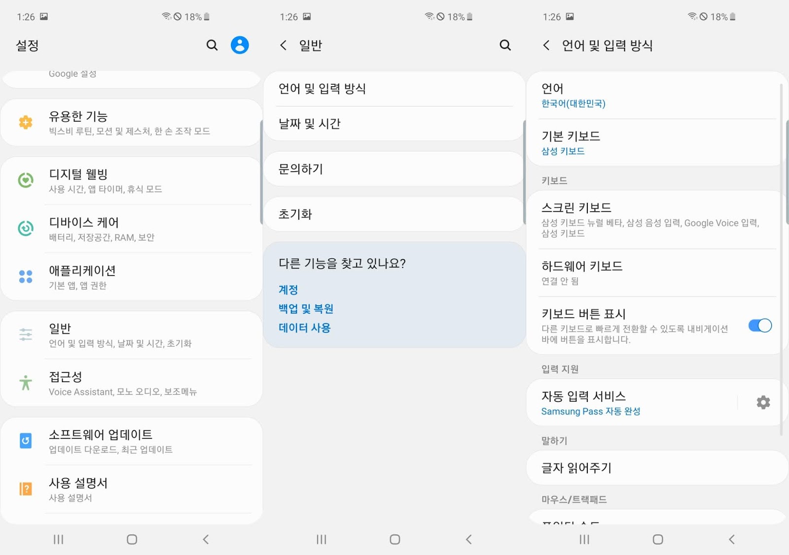 방법 : 설정 - 일반 - 언어 및 입력 방식 - 스크린 키보드 - 삼성 키보드 - 언어 및 키보드 형식 - 한국어 - 쿼티 키보드