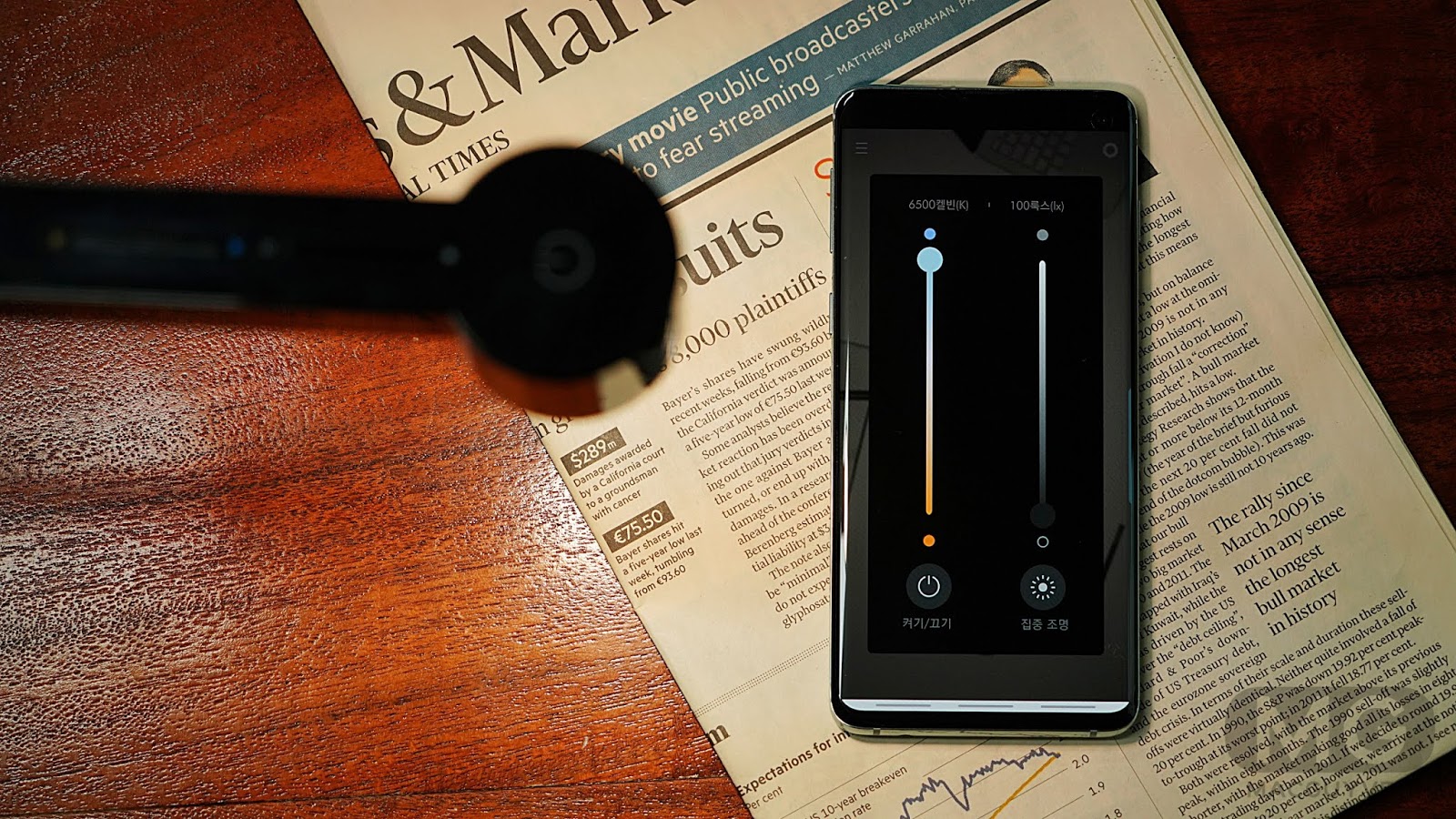 터치로 전원을 켜고, 스와이프로 밝기와 색온도를 조절할 수 있습니다. 반응은 빠릿빠릿합니다.