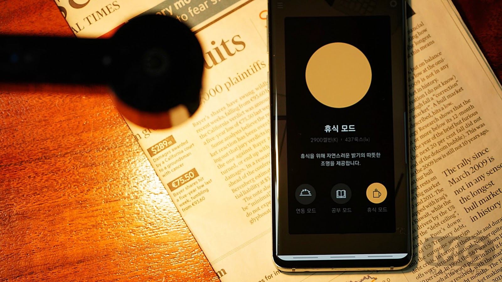 ✎ 스마트폰 앱을 활용해 공부 모드, 휴식 모드, 정밀 작업 모드, 집중 모드 등을 선택해 볼 수 있었고, 현재 위치를 입력하면 현재 위치에 맞는 자연광을 파악해 빛을 내어주어 만족스러웠습니다.