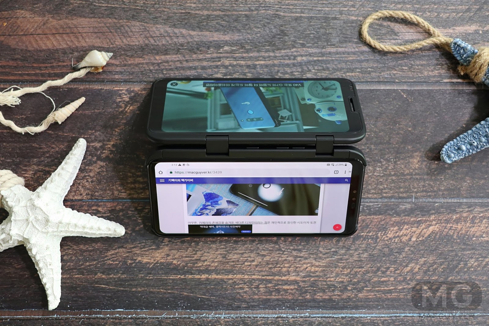 반면에 LG V50 5G는 듀얼 스크린으로 완전히 다른 멀티 작업을 선보였습니다.
