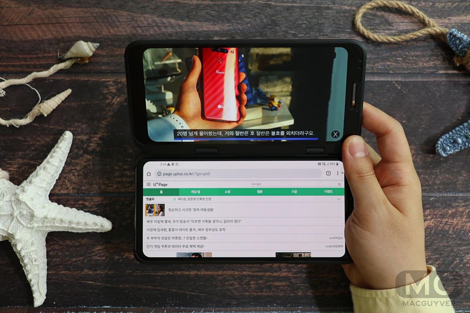 반면에 LG V50 5G는 듀얼 스크린으로 완전히 다른 멀티 작업을 선보였습니다.