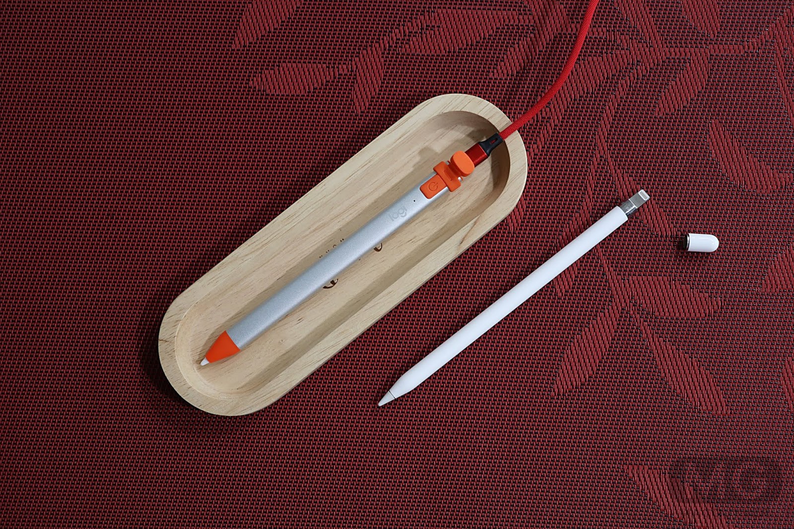 - 충전 방식은 훨씬 마음에 듭니다. 라이트닝 케이블을 그대로 크레용에 꽂으면 되죠. 애플 펜슬은 아이패드에 붙어야 하지만, 크레용의 기묘하지 않은 충전 방식이 마음에 드네요.