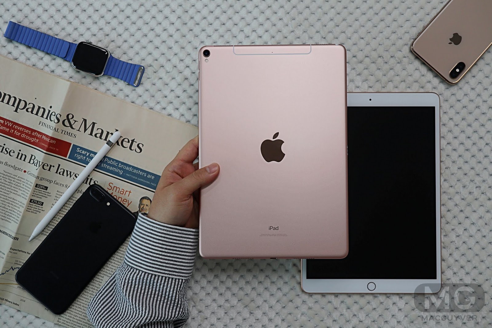 그렇다고 예전처럼 옐로우 톤의 골드인 것은 아닙니다. 옆에 아이패드 프로2가 없으면 로즈 골드로 보일 정도인데요.