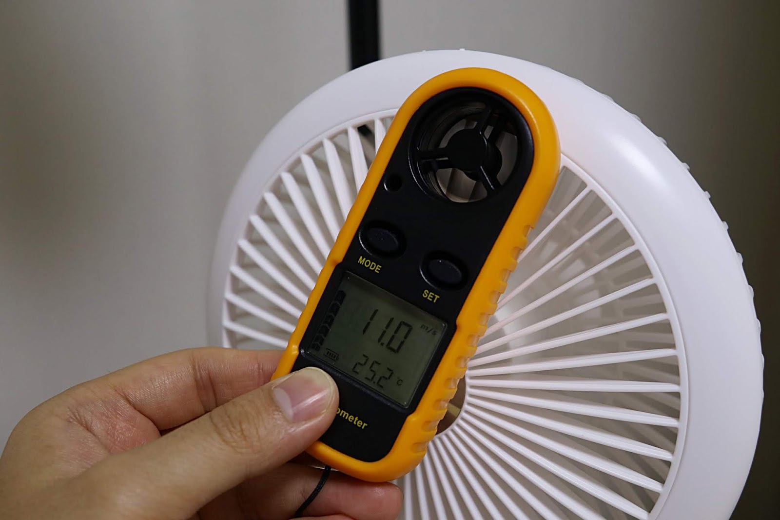 스펙상으로는 4.2m/s 지만 더 높게 나온 것이죠. 1m 정도 멀어지니까 1m/s 정도 나왔는데요. 이후에는 측정기로는 확인이 안되지만 확실히 바람을 불어준다는 느낌이 들었습니다.
