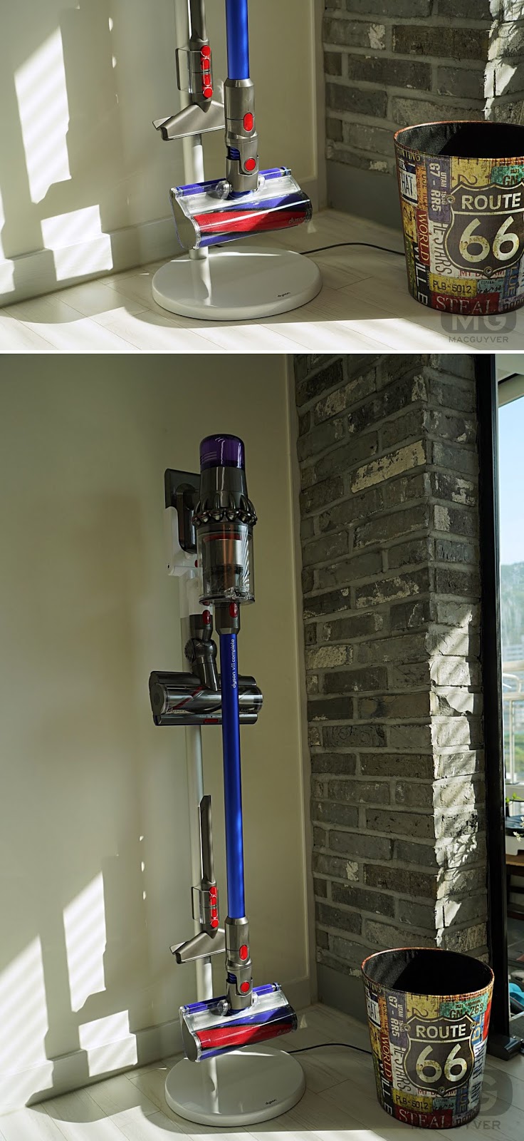 대신 희소식이 있습니다. 다이슨 청소기에 스탠드가 생겼습니다. 벽에 구멍을 뚫지 않고도 다이슨 청소기를 거치하고 충전할 수 있게 된 거죠.