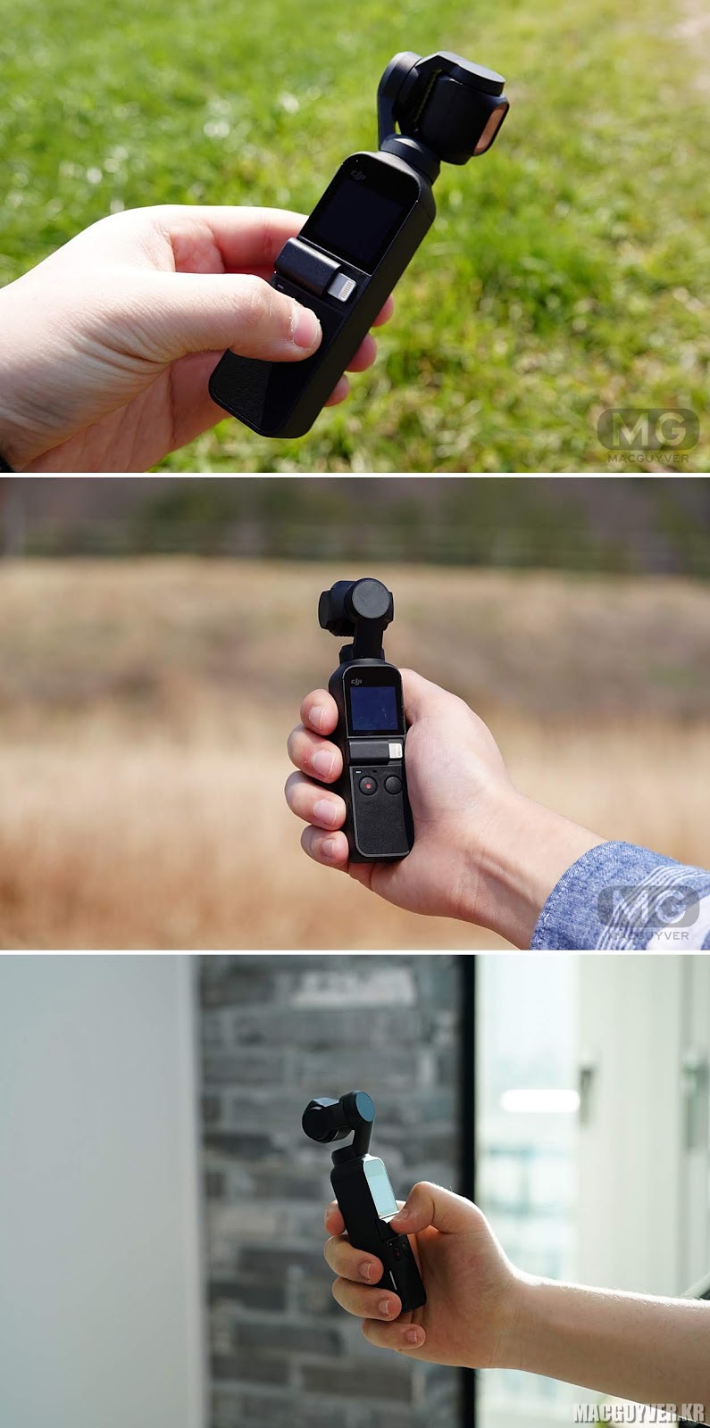 ✎ 세로형 그립 디자인에 작고 슬림한 크기를 지닌 DJI 오즈모 포켓 액션캠