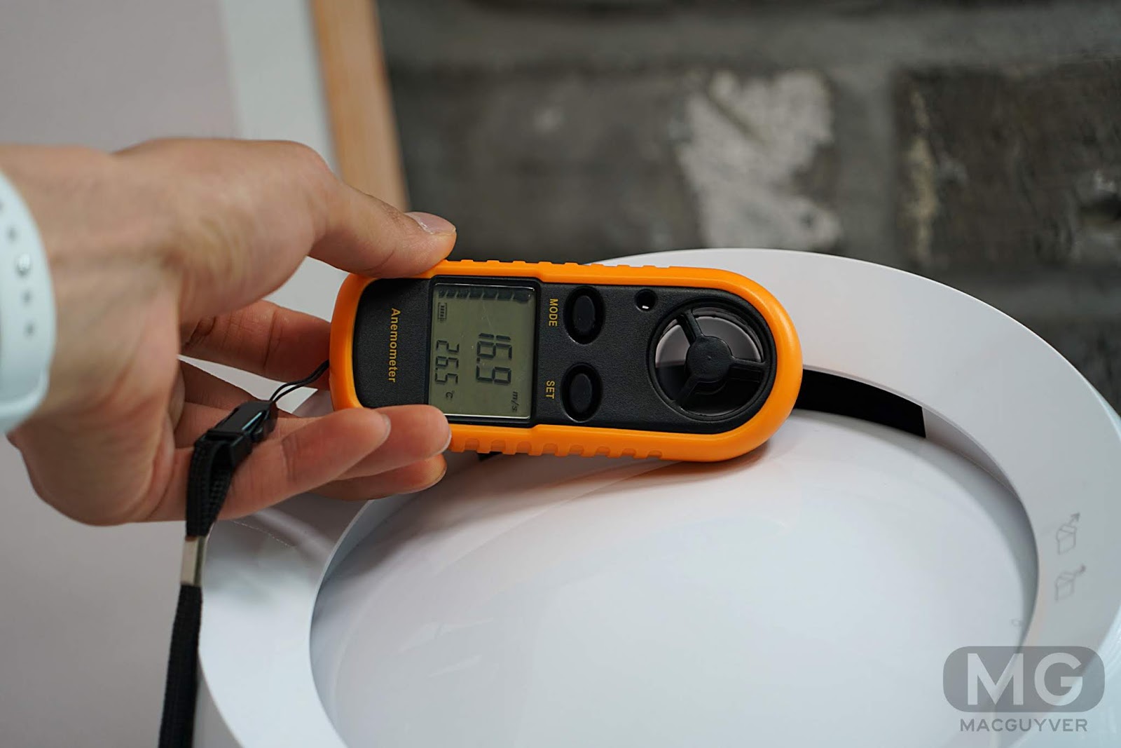 코어 플로우로 뿜어져 나오는 바람이 이 정도고, 입구에서 내뿜는 바람의 속도는 10단계일 때 17m/s 이상으로 굉장히 강했습니다.