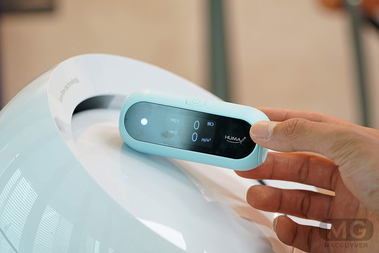 신제품 발표회에서는 손으로 직접 하는 조절 방식을 선택한 이유가, 이 개인용 공기청정기의 위치가 사용자의 손이 닿는 곳에 있기 때문이라고 설명했는데요.
