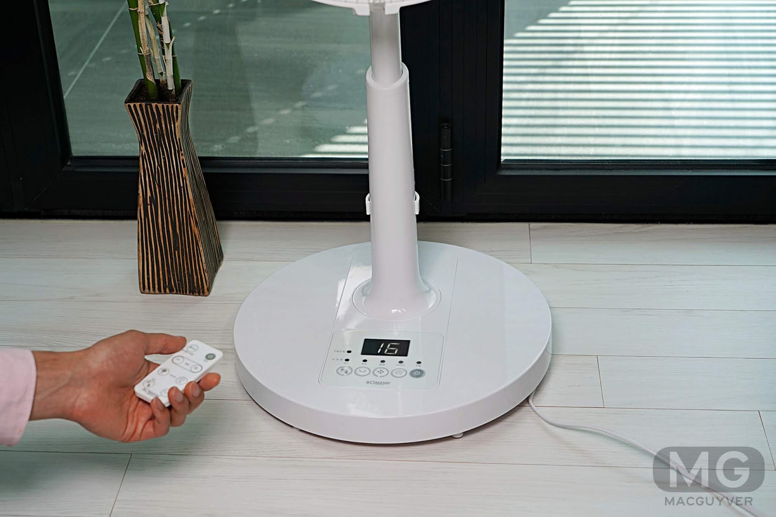 ✎ 스마트 터치 패널 디자인으로 인테리어 효과가 컸던 보만 7엽 24단 BLDC 리모컨 선풍기 BF14170W