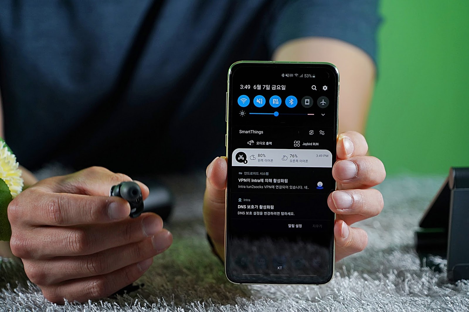 안드로이드 스마트폰을 기준으로, 알림 센터에서 좌/우 이어버드의 배터리 잔량을 1% 단위로 알려주는 점도 좋았습니다.