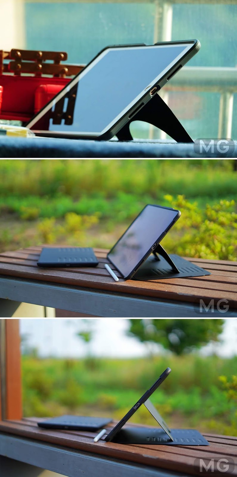 하지만 블루투스 키보드는 별도로 휴대해야 하고, 무게감이 증가한다는 점, 세로 거치 기능이 없고 카메라 촬영 시 번거로운 점은 감안해야 할 것 같습니다.