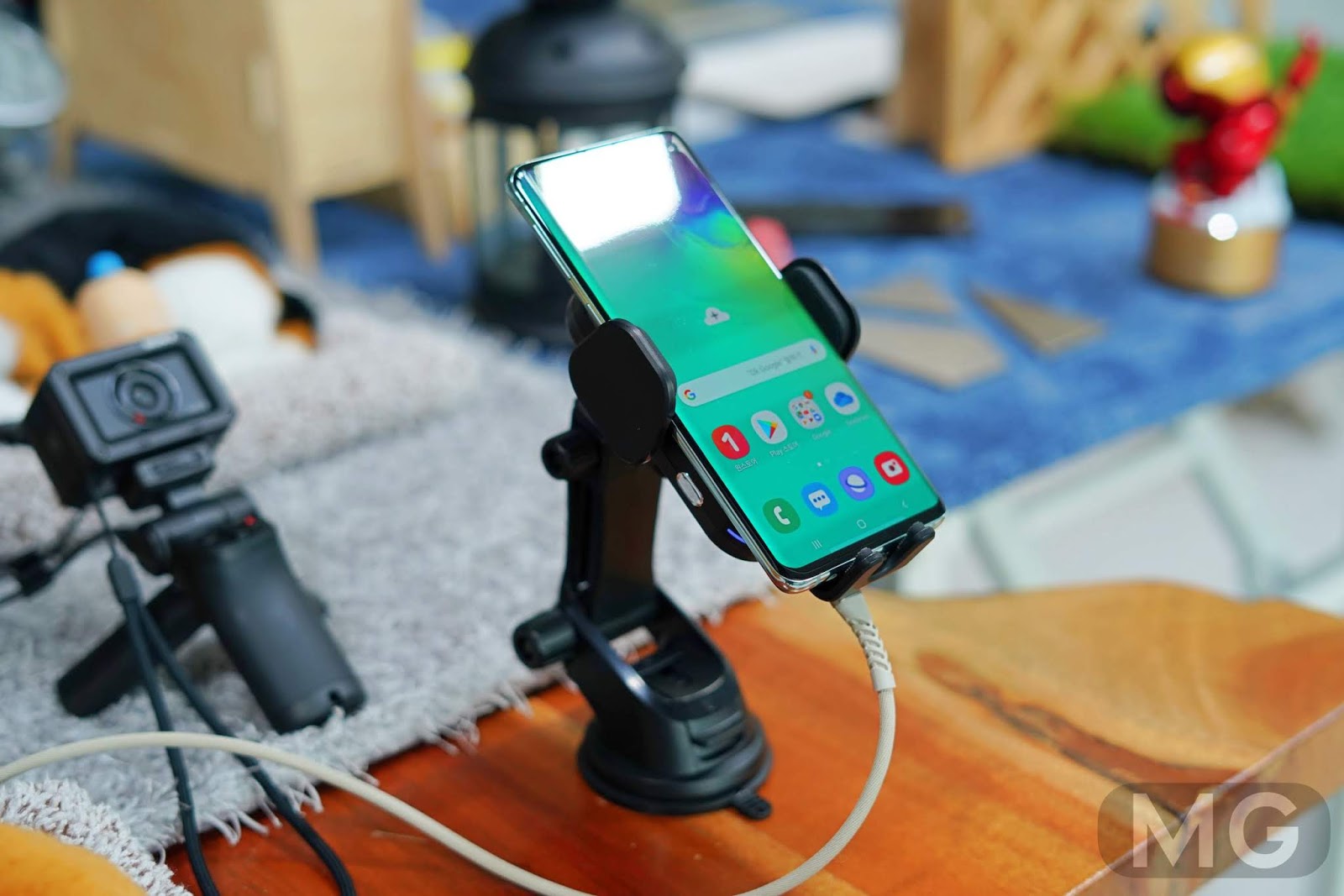 대시보드형 마운트는 각도 조절과 길이 조절이 자유로웠는데요. 4면 실리콘 패드는 폰을 꽉 잡아주기도 했고, 10W 고속 무선 충전을 지원하는 점도 장점이 아닐까 합니다.