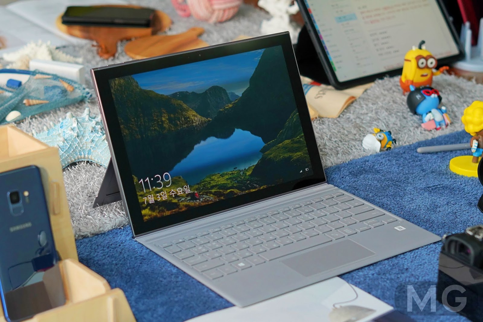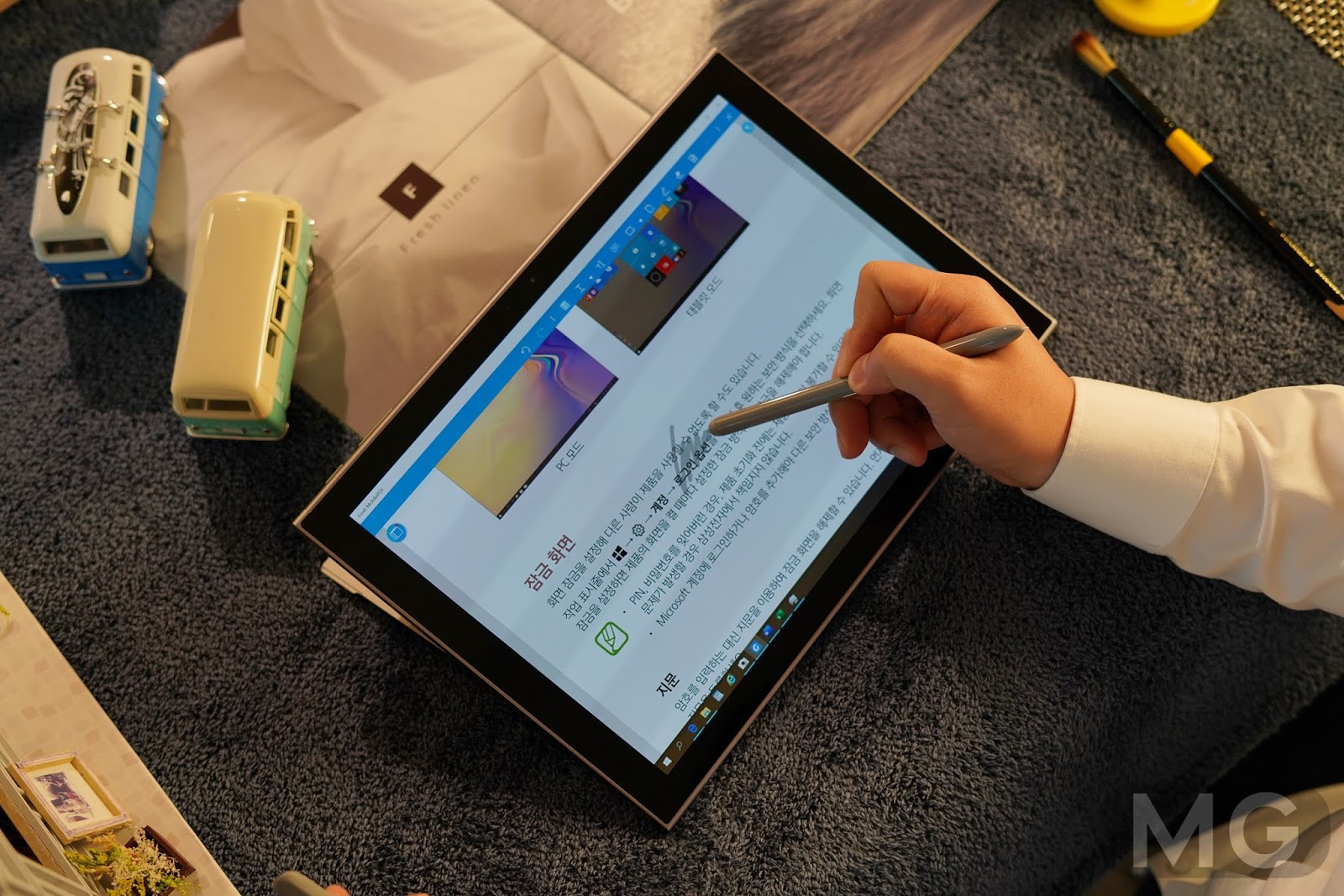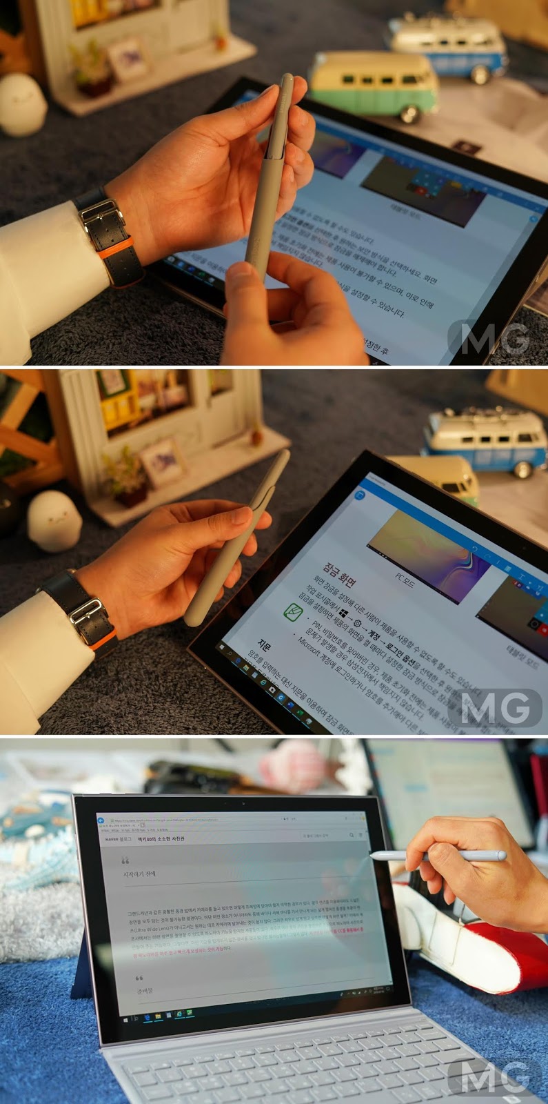 무게감은 생각보다 엄청 가볍고 재질감은 고급스러운 거죠. 외관은 윈도우 태블릿으로서는 100점 만점을 줄 수 있지 않을까 합니다.