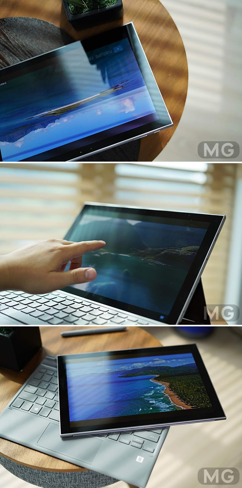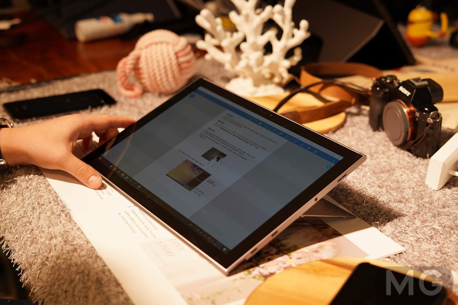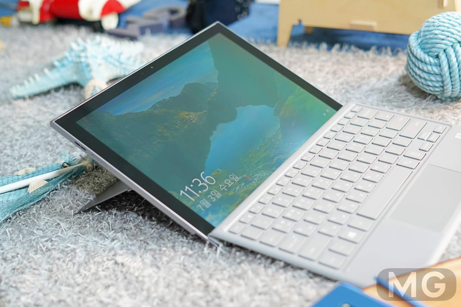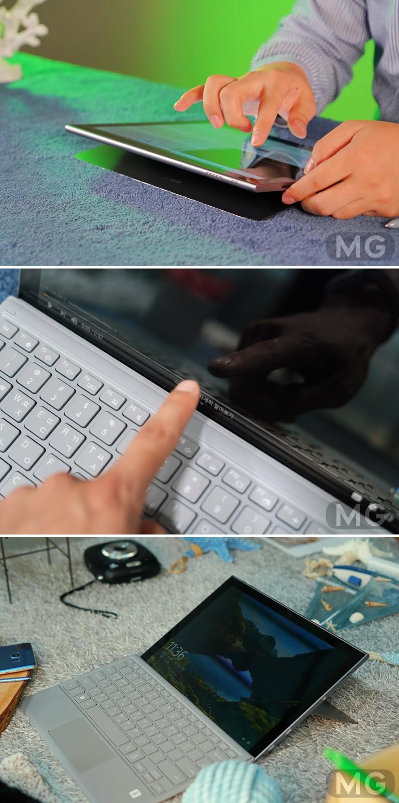 무게감은 생각보다 엄청 가볍고 재질감은 고급스러운 거죠. 외관은 윈도우 태블릿으로서는 100점 만점을 줄 수 있지 않을까 합니다.