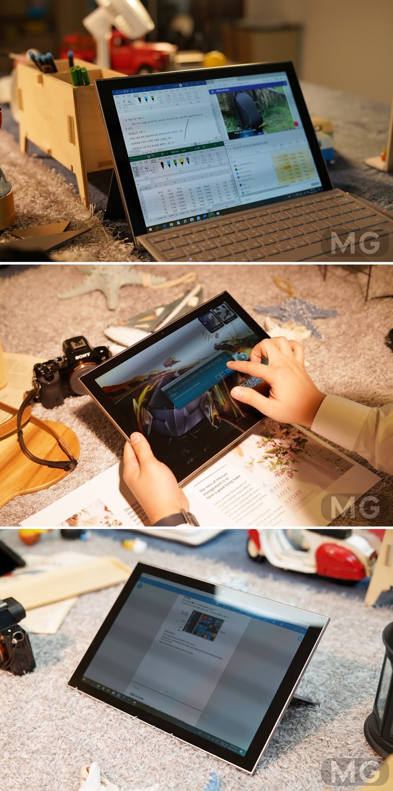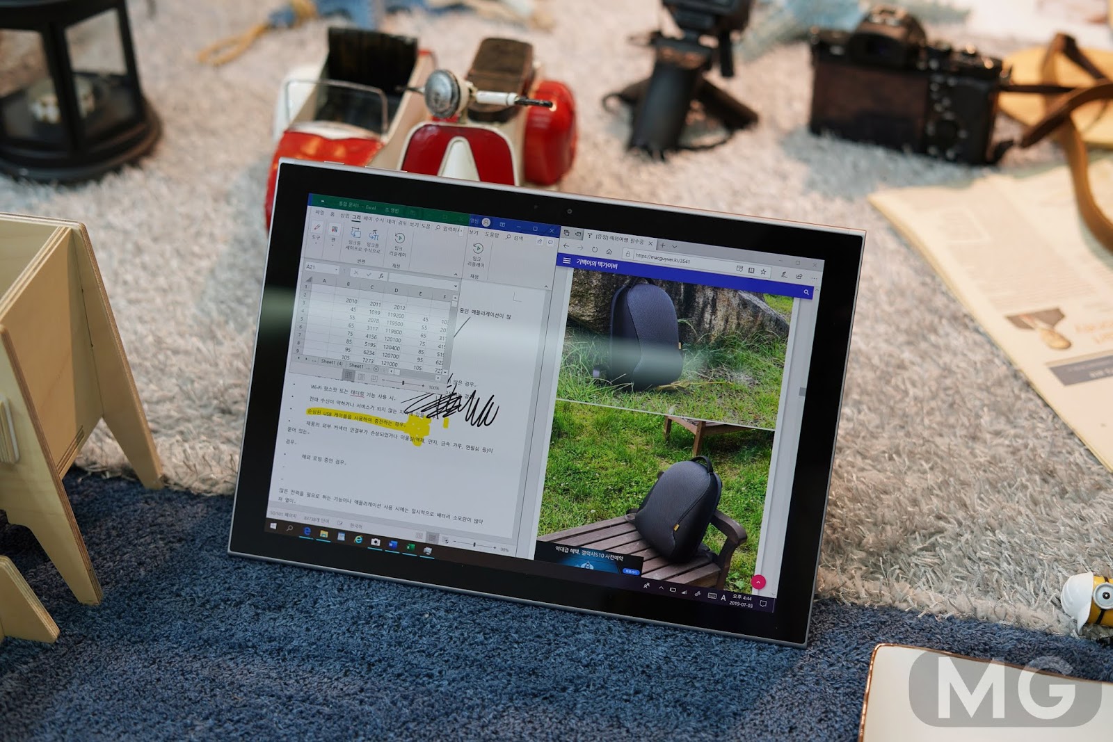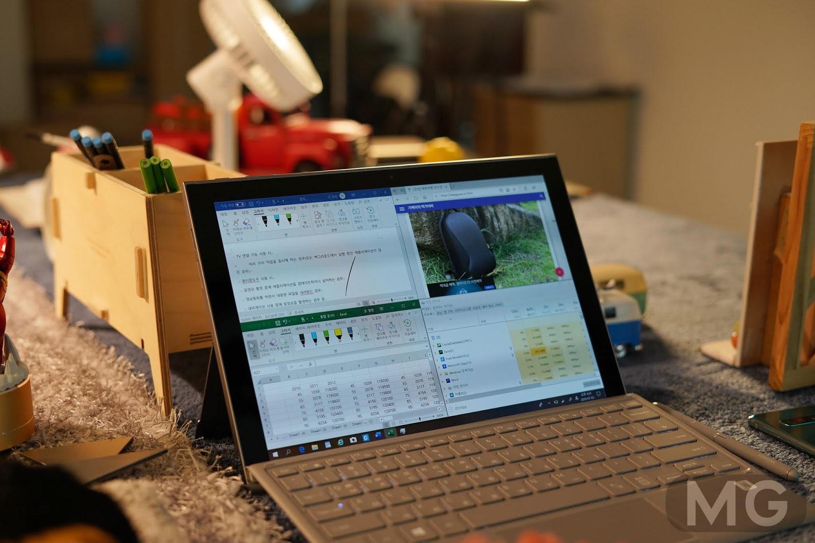 이를테면 웹서핑을 다양하게 하면서 유튜브 동영상도 시청하고, PDF 뷰어에 메모를 하고 스케치를 하면서 카메라로 사진도 찍고 문서 이동까지 해도 전혀 문제가 없는 거죠.