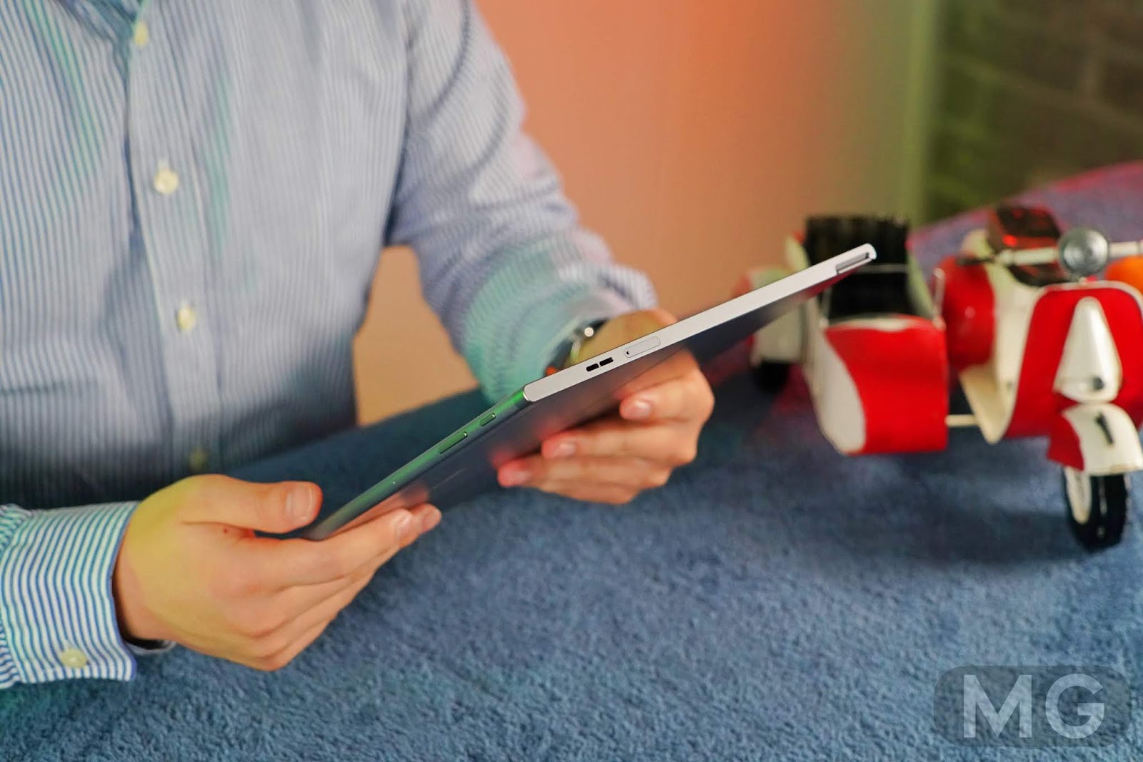 특히 1세대와 달리 킥스탠드를 탑재하면서 편의성이 높아졌고, 후면 상단에는 지문 인식 및 카메라가 위치한다는 점이 인상적이었는데요.
