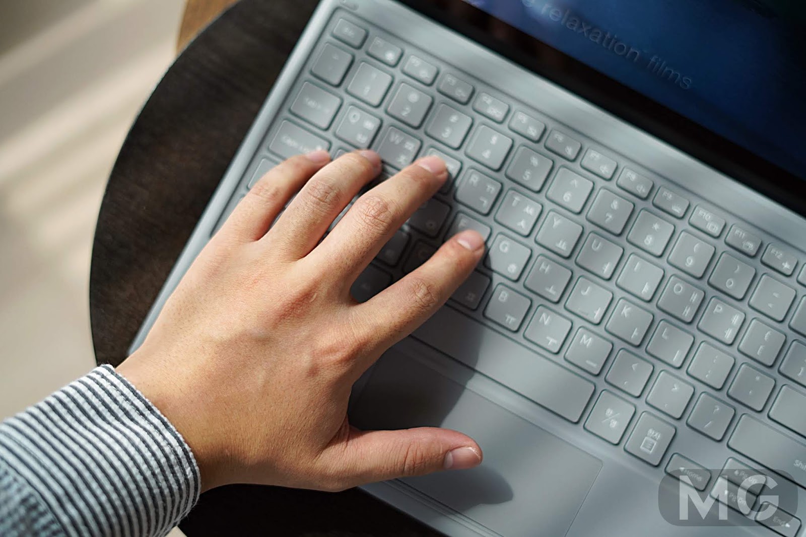키감은 통통거리는 편이고, 반발력이 의외로 좋아서 타이핑 시 부담은 거의 없었는데요. 생각보다 소음은 낮은 듯 약간 있는 편이고, 가끔 입력한 글자 중 한두 개가 누락되는 경우가 있어서 수정을 했던 것 같네요.