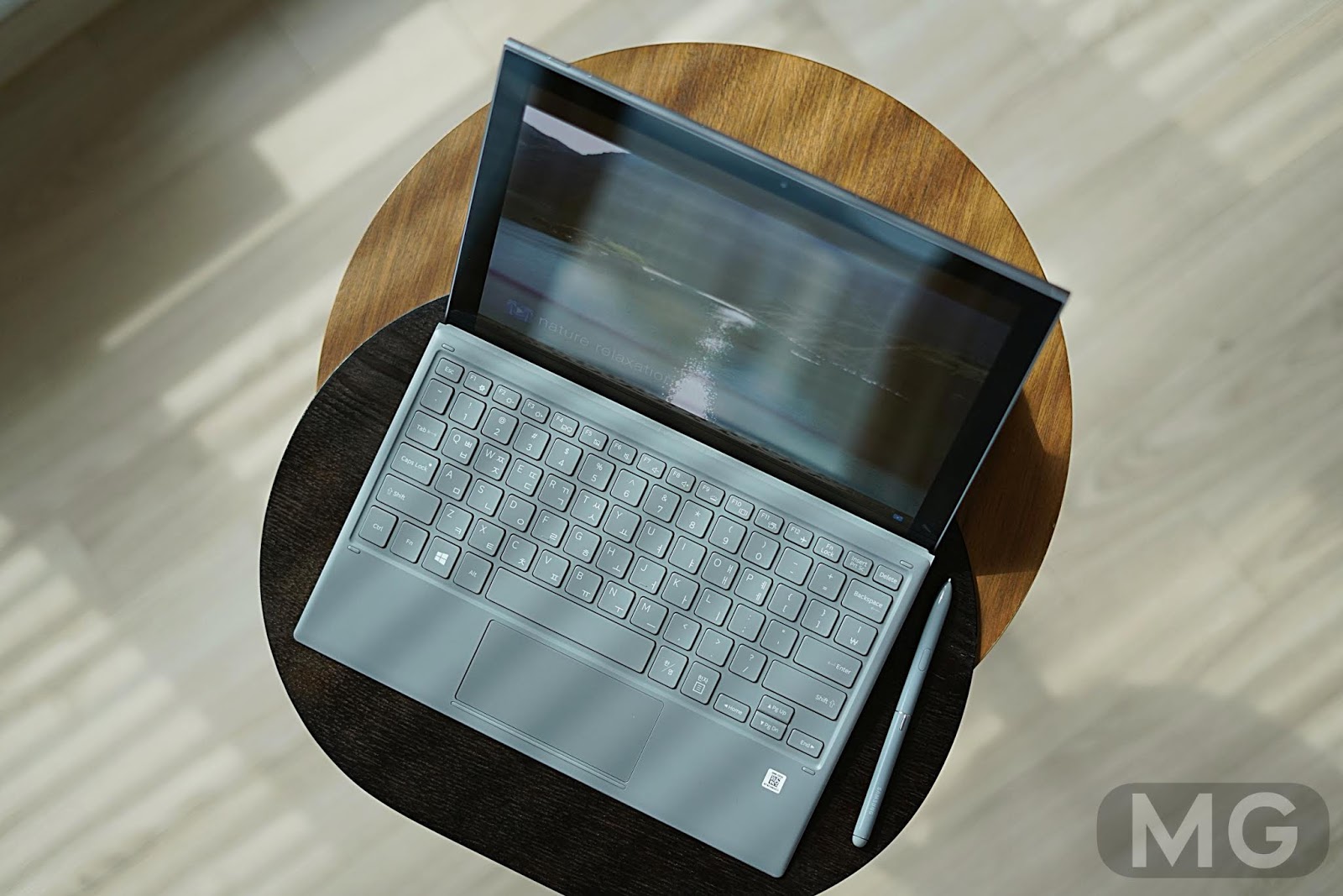 무난한 '네모네모난' 모양새를 갖춘 갤럭시북2는 어떻게 잡는지에 따라서 손맛이 다릅니다. 1세대와 다르게, 가로 모드를 기준으로 위아래는 둥글게, 좌우는 각지게 다듬었기 때문이죠.