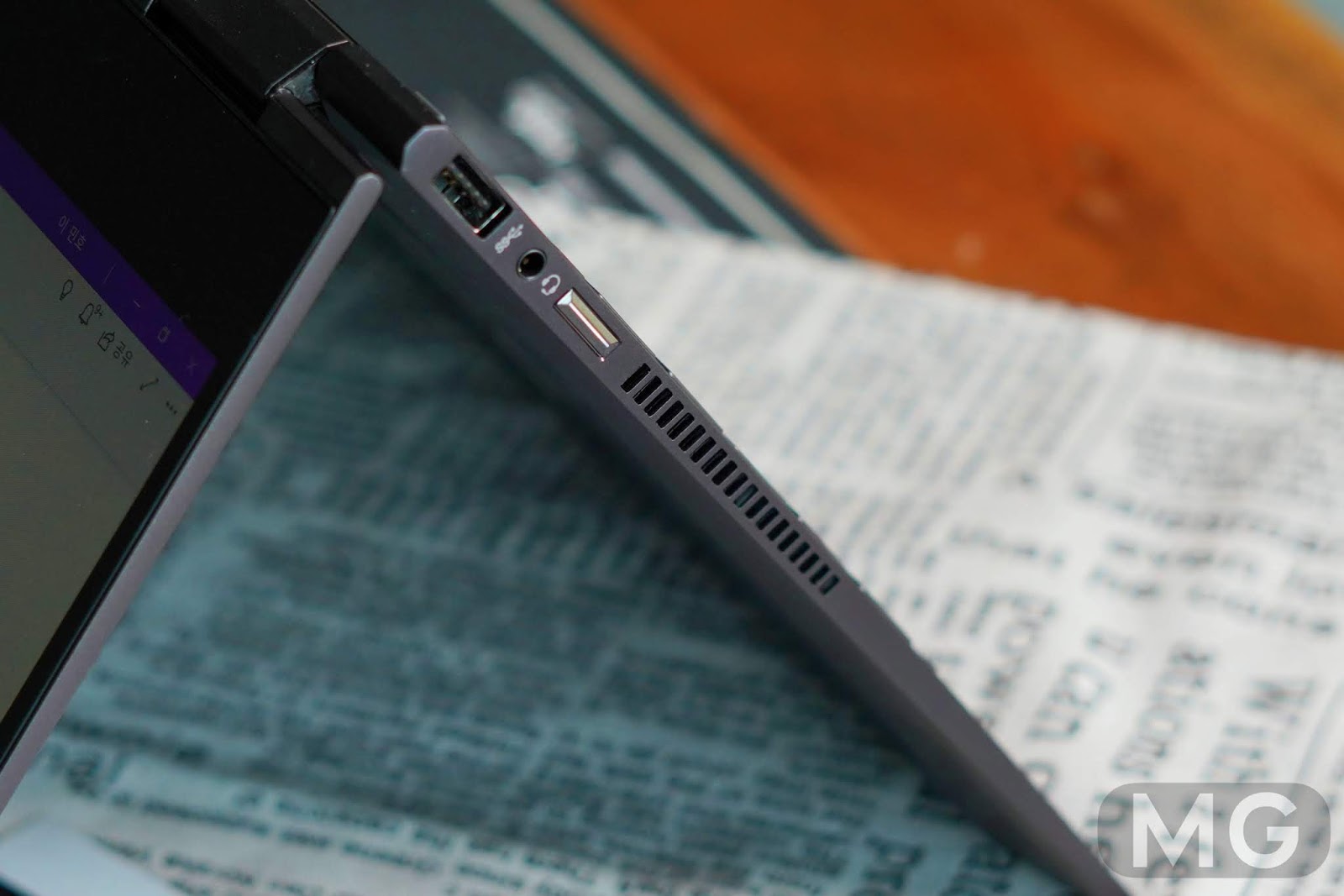 반면 송풍구의 온도는 45도까지 올라갔습니다. 좌측에만 위치해서 노트북 모드로 사용할 때는 손이 갈 일이 거의 없죠. 하지만 태블릿 모드로 사용할 때는 손이 닿기 쉬우니까 주의가 필요할 것 같습니다.
