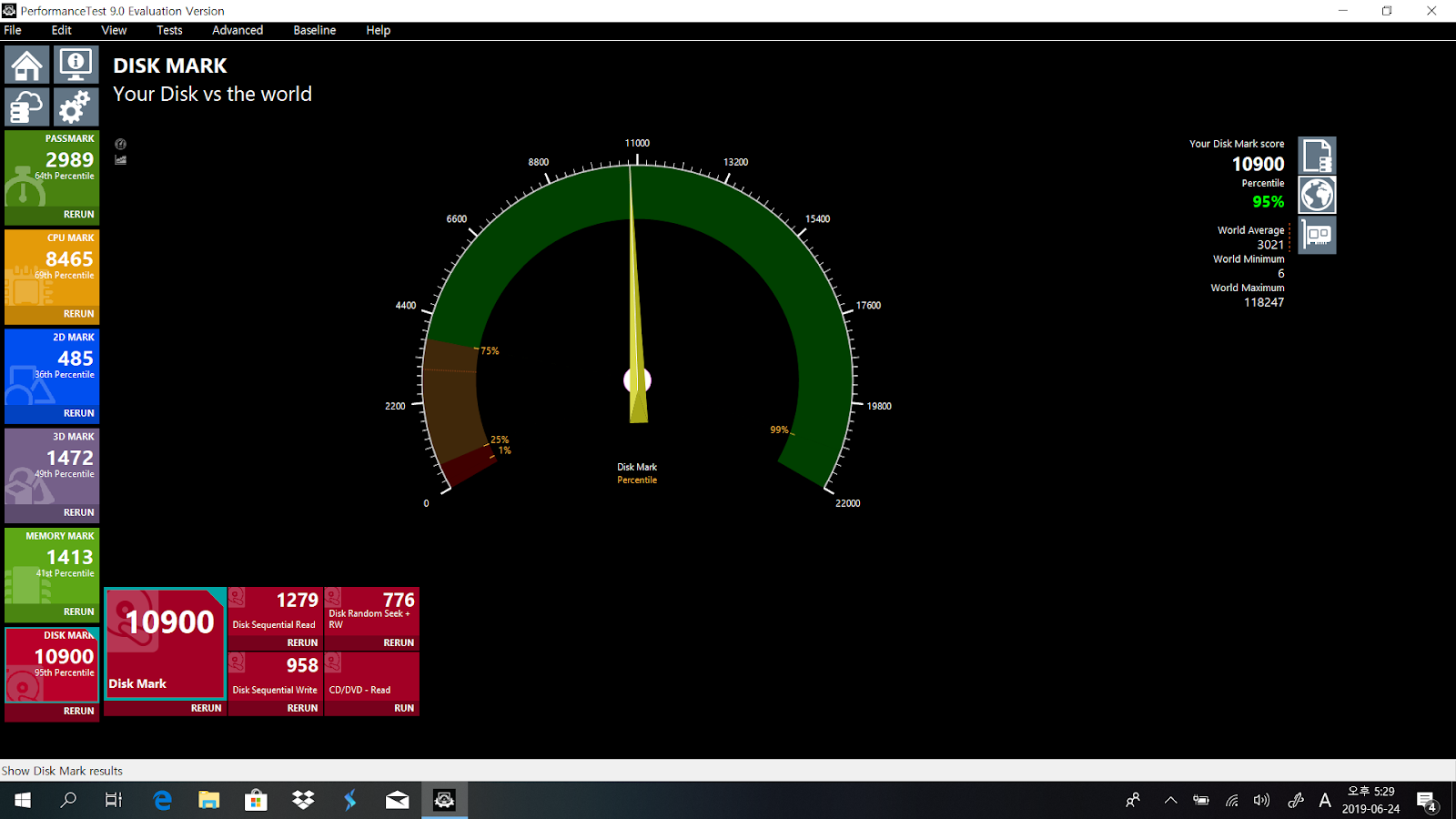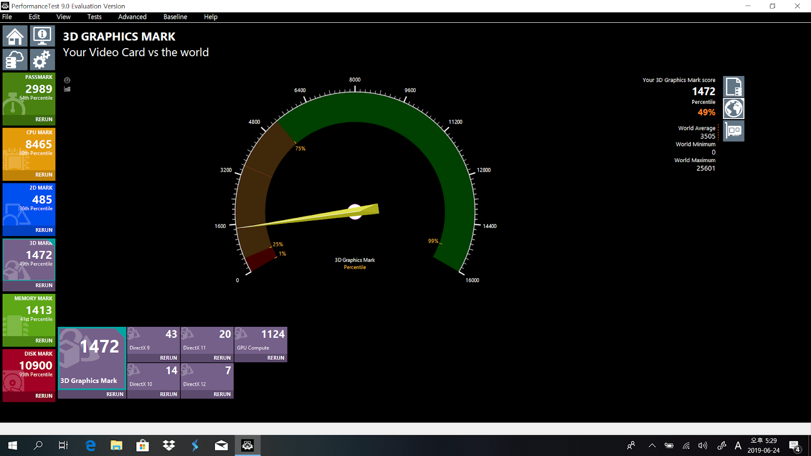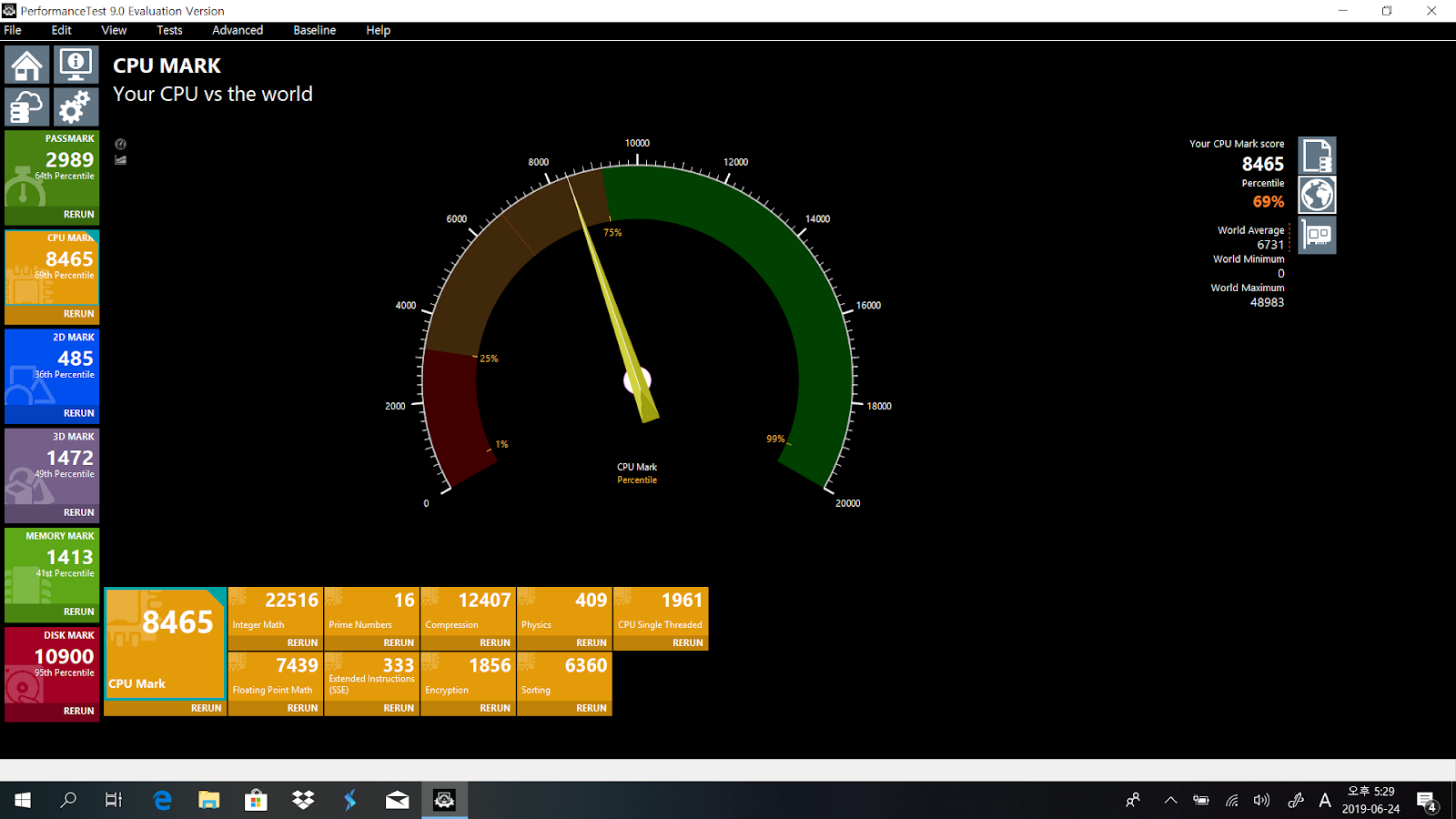 PASS마크의 CPU 점수는 최근에 측정해본 인텔 i5-8265U를 탑재한 노트북들과 비슷한 수준이었습니다. 200점 정도 더 높게 측정되었는데요. 점수는 그때그때 다르니까 큰 의미는 없을 것 같습니다.