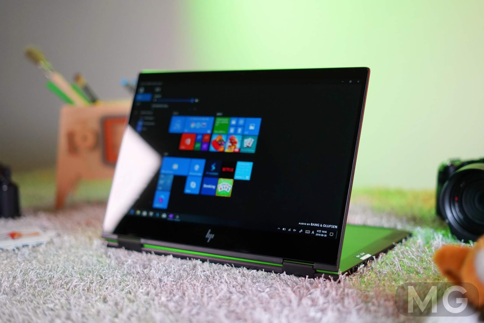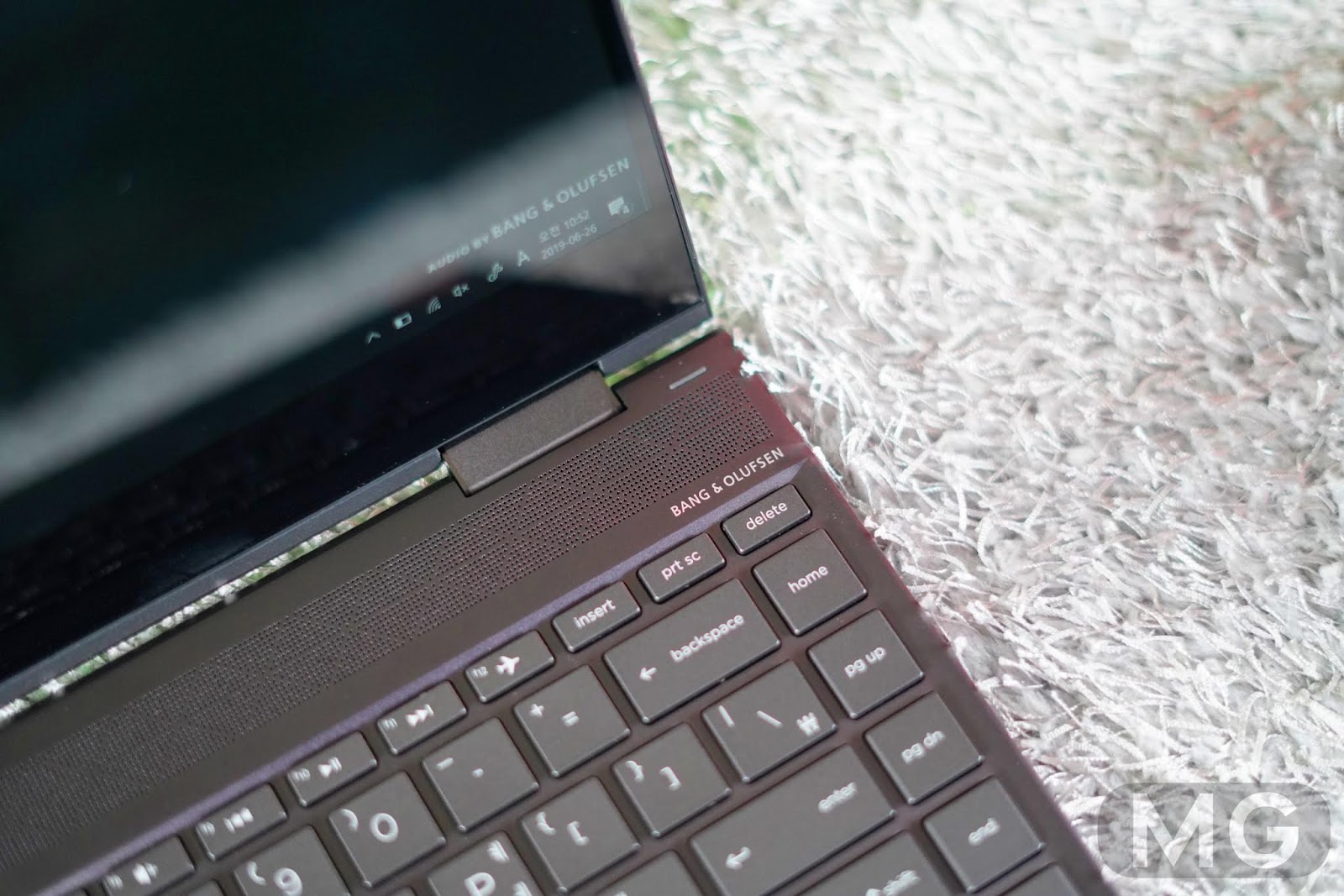 반면 사운드는 뱅앤올룹슨에 쿼드 스피커까지 더해서 아쉬울 게 없는데요. 특히, 하판 아래쪽에 두 개, 키보드 위에 길게 스피커가 붙어 있어서, 바닥상태와 거치 모양에 상관없이 준수한 소리를 냅니다.
