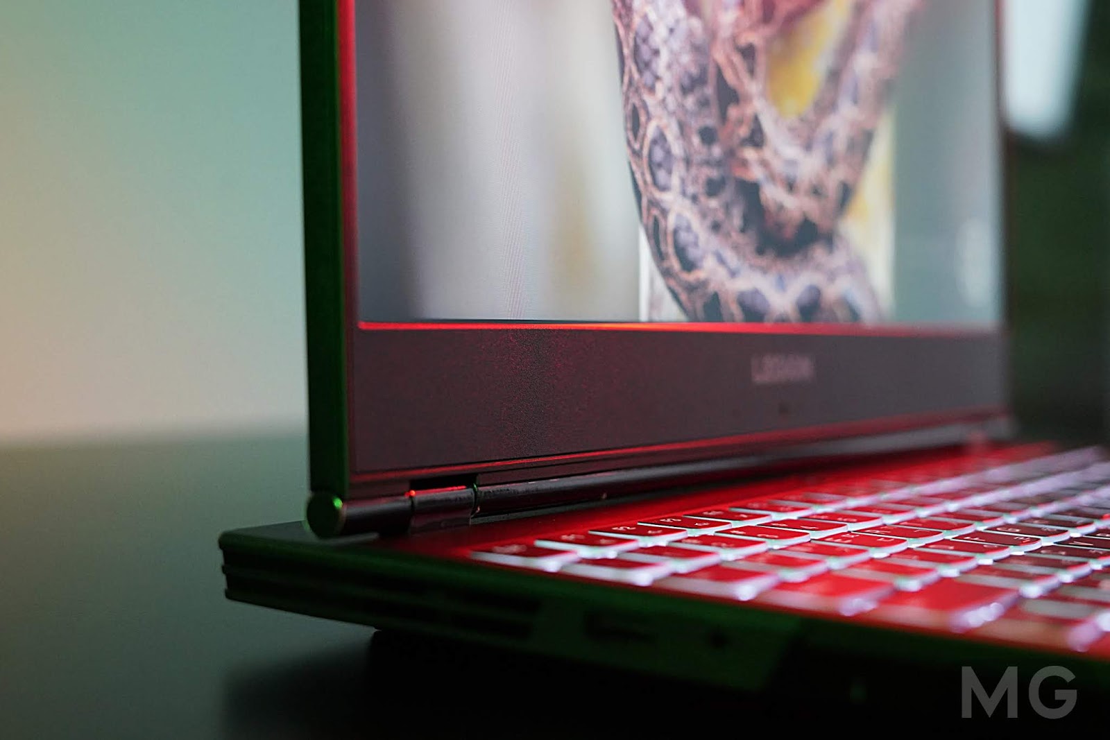 레노버 리전 노트북은 힌지 부분이 독특한데 일단 상판과 하판의 길이가 다릅니다. 그리고 이 힌지는 180도까지 펼쳐지고, 마치 요가북처럼 힘이 제법 강합니다. 상판과 하판의 무게 차이 때문에 상판을 한손으로 열 수 있습니다.