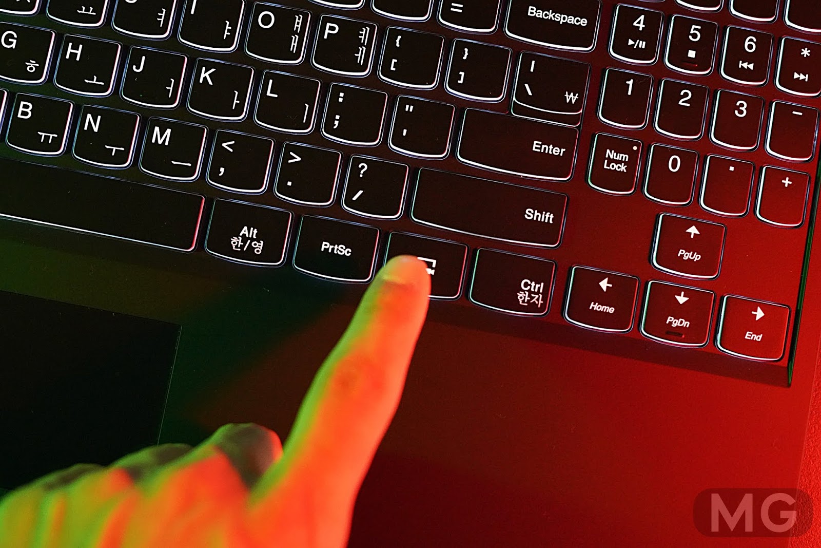 이 게이밍 노트북의 키감도 다른 레노버 노트북과 조금 차이가 있었습니다. 키감이 준수한 건 동일하지만, 반발력의 강도가 조금 더 높아졌습니다.