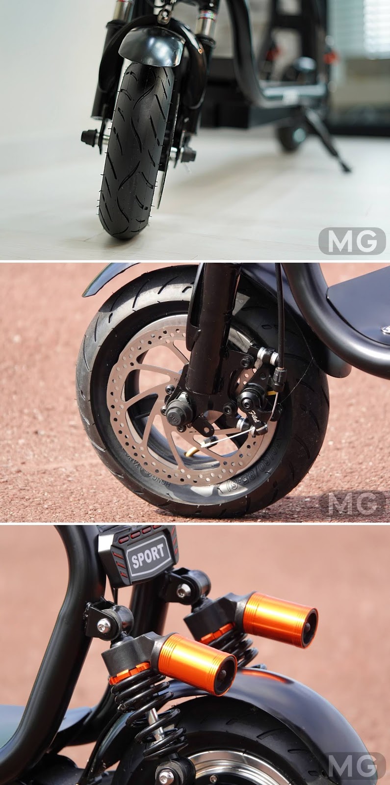후방에는 디스크 브레이크가 포함되어서 더욱 뛰어난 제동력을 기대하게 만들더라고요.