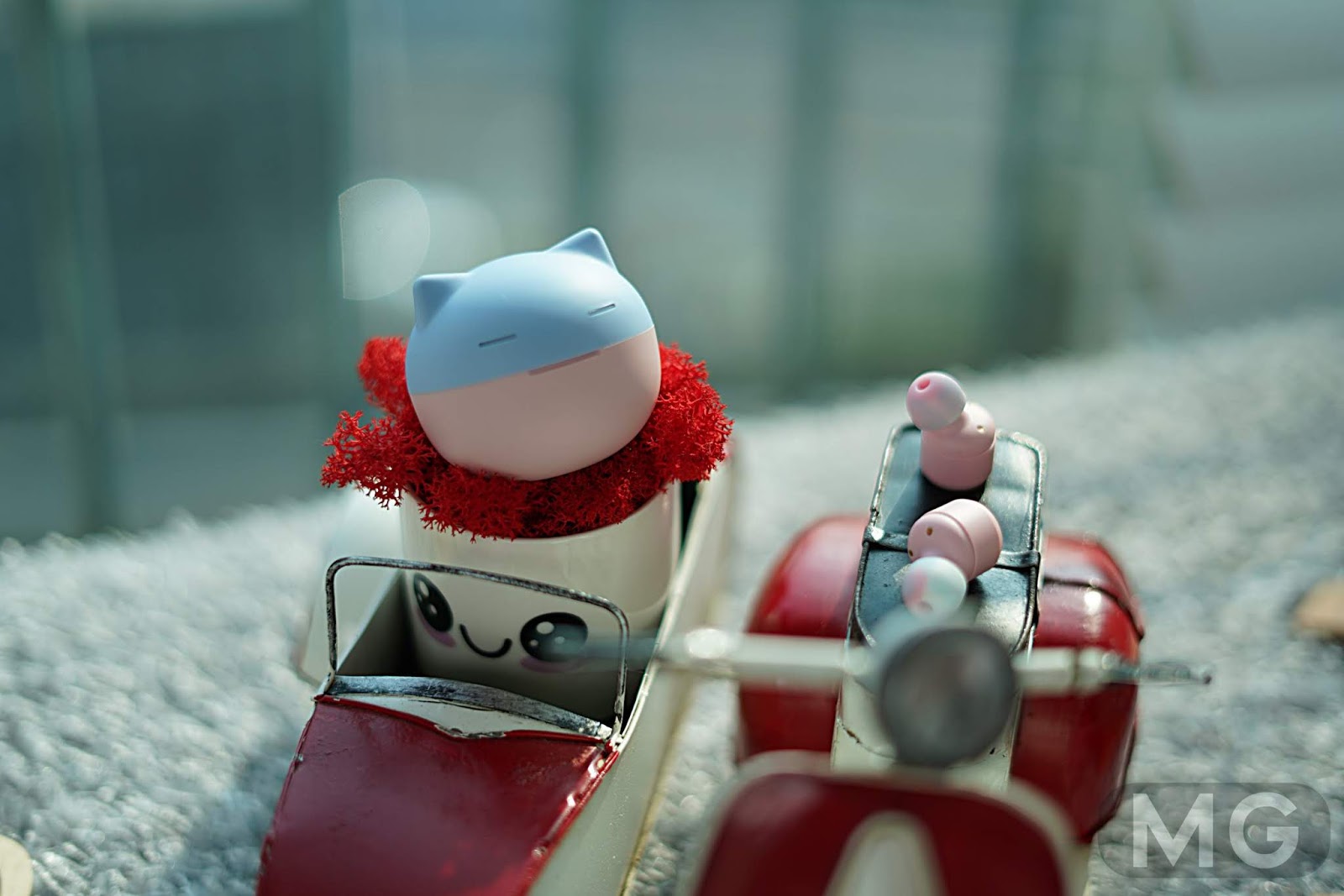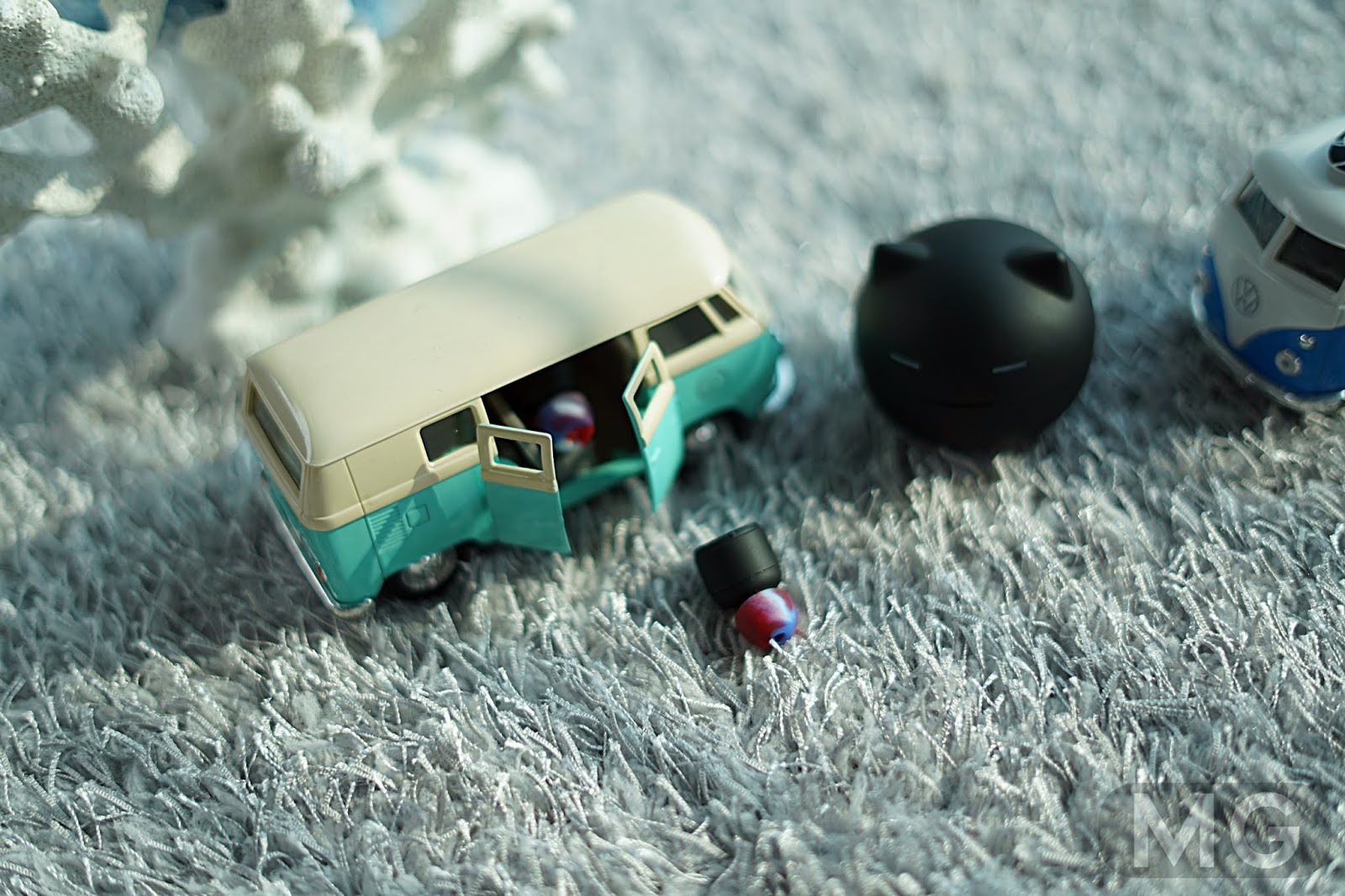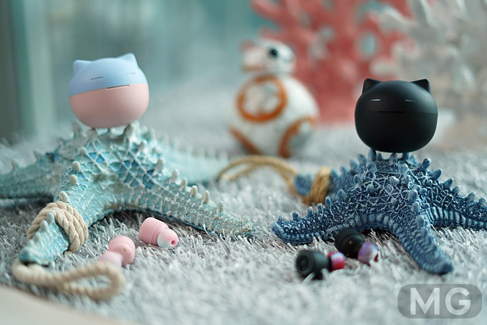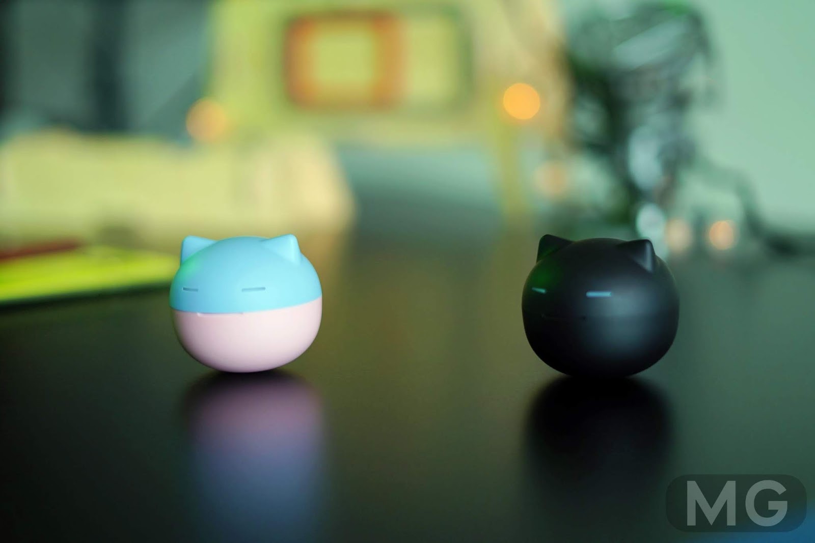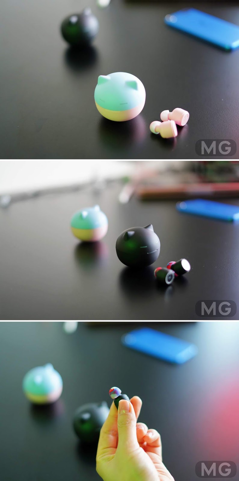 고양이의 입을 벌려보면 내부에 유닛이 꽂혀 있는데요. 여기서도 독특한 점은 일반적인 이어폰들과 다르게 일자로 꽂혀 있는 게 아니라 옆으로 누운 상태로 충전 포트에 꽂혀 있다는 거죠.
